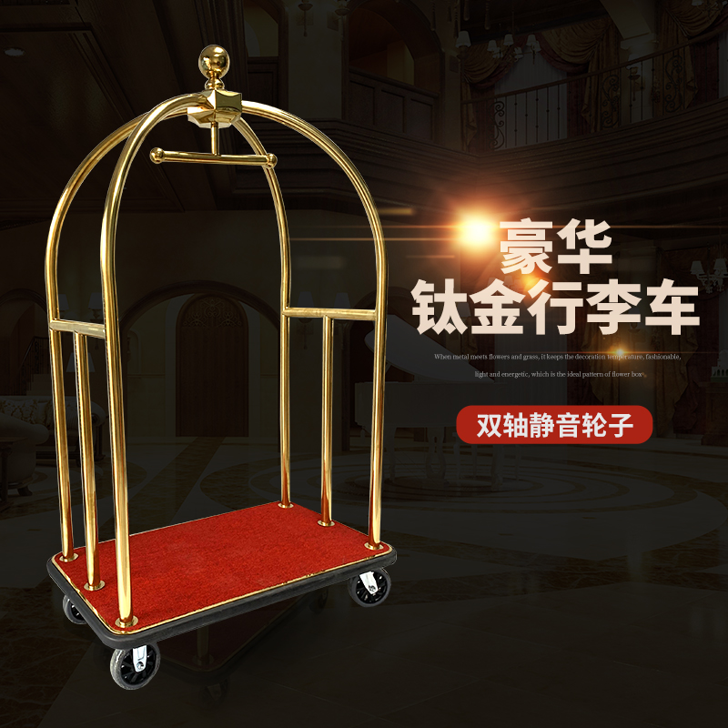 Khách sạn hành lý sảnh đợi xe hành lý xe hành lý xe thép không gỉ phẳng xe kéo câm bánh xe lớn titan xe đẩy