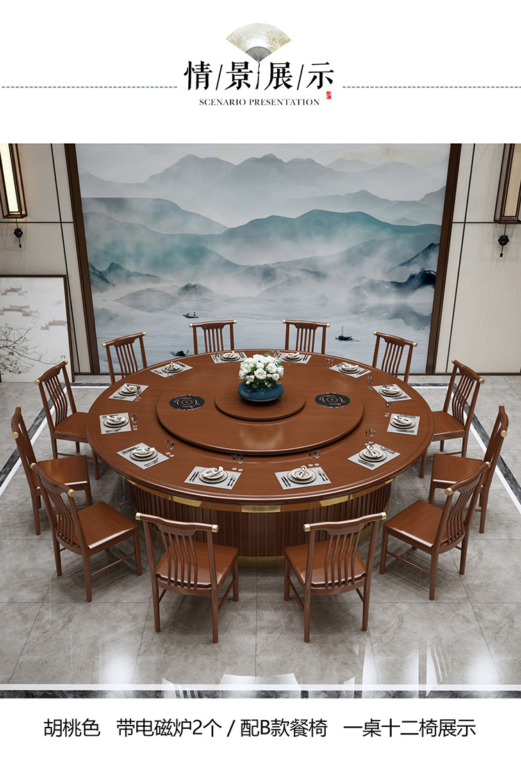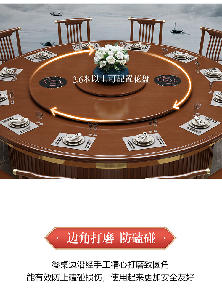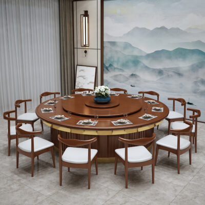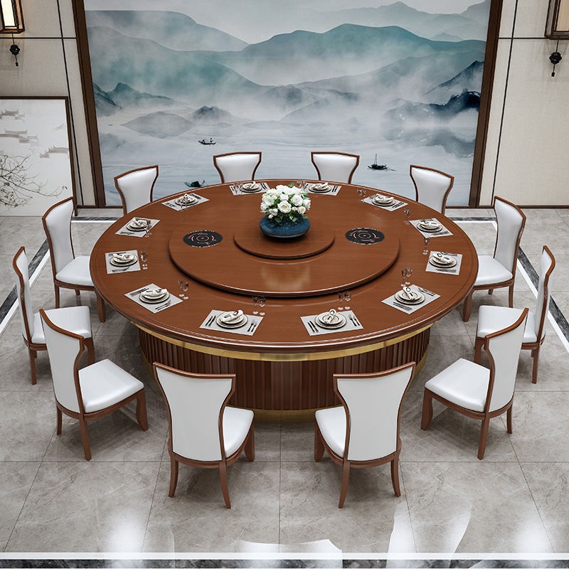 Khách sạn hiện đại và đơn giản bàn ăn gỗ nguyên khối xoay tự động bàn tròn lớn để ăn bàn xoay bằng đá cẩm thạch hộp nhà hàng Châu Âu