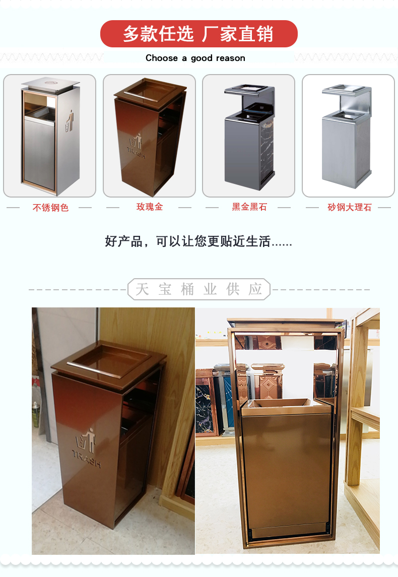 Khách sạn khách sạn thùng rác nhà câu lạc bộ sảnh KTV thùng rác thép không gỉ trung tâm mua sắm tùy chỉnh lưu trữ rác hộp vỏ