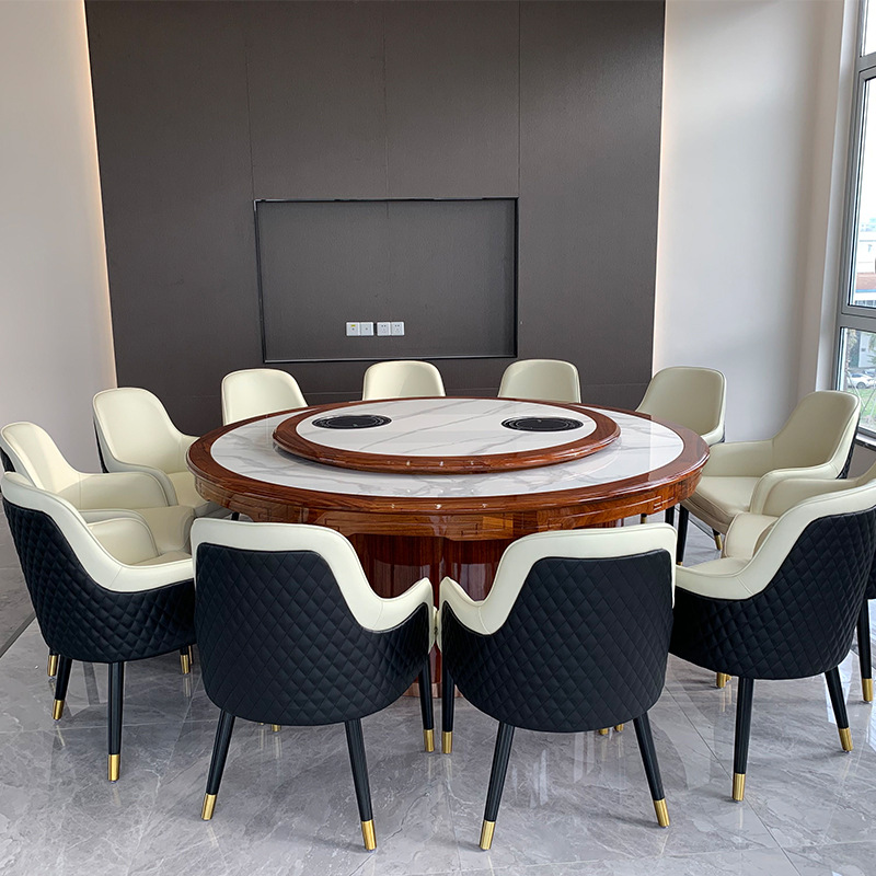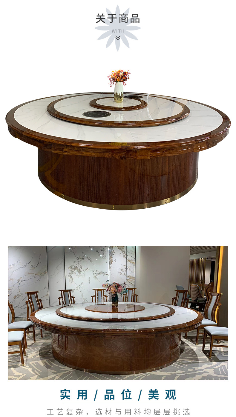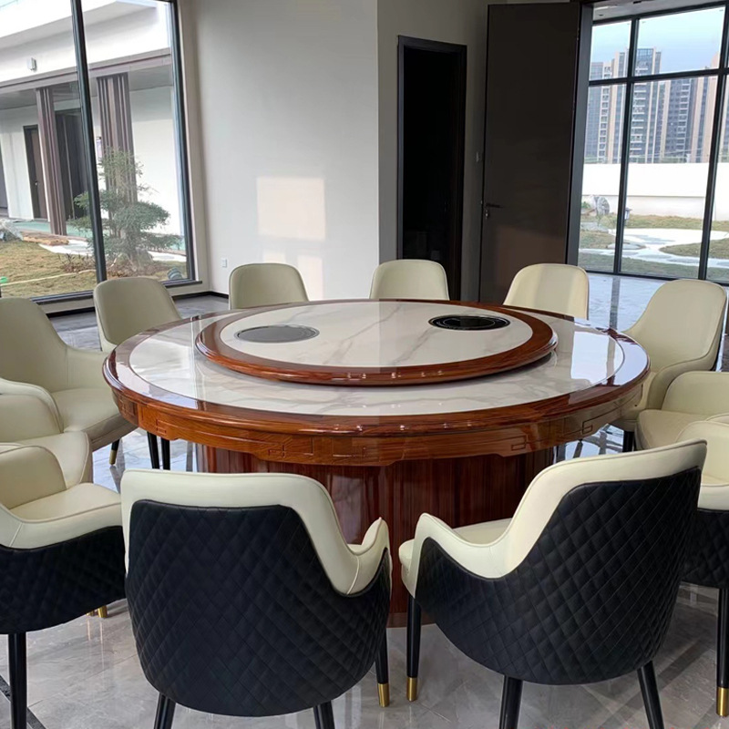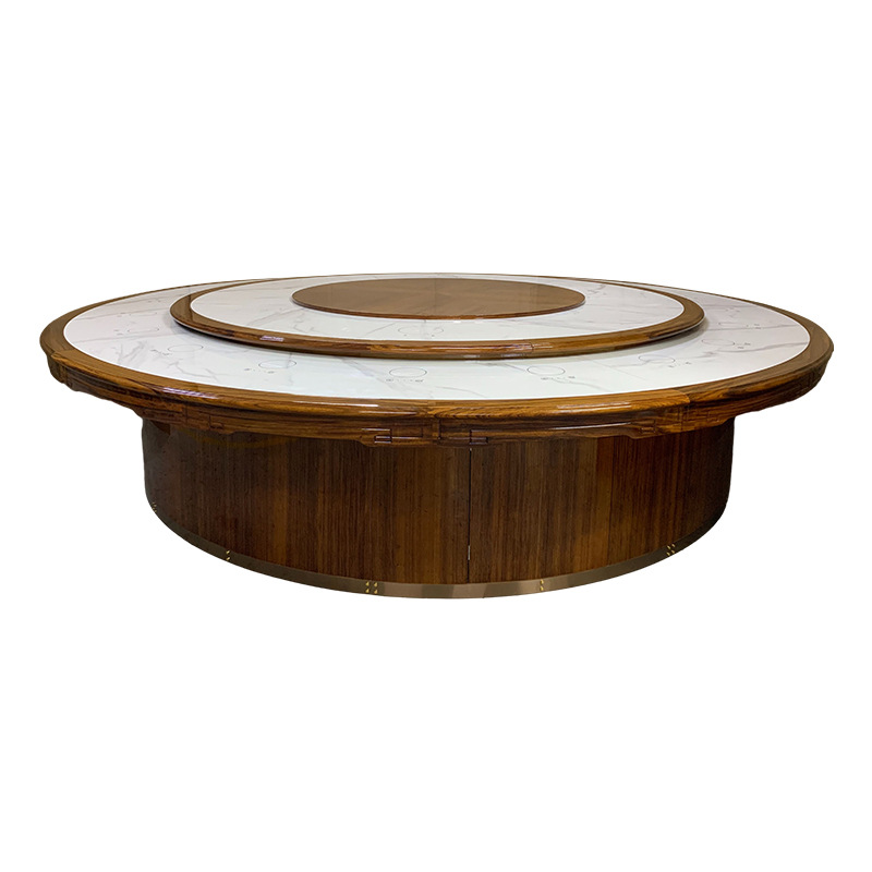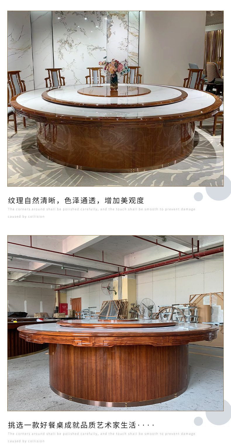 Khách sạn kiểu Trung Quốc mới bàn ăn xoay tự động gỗ nguyên khối bàn tròn lớn bàn khách sạn câu lạc bộ bàn ăn phiến đá internet nhà thiết kế nổi tiếng