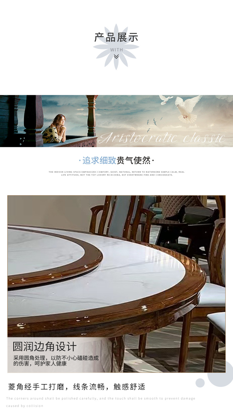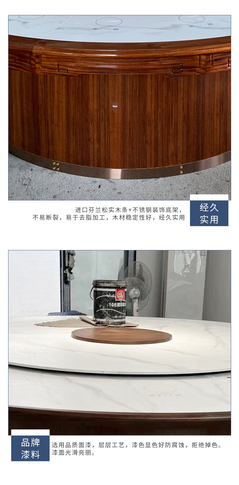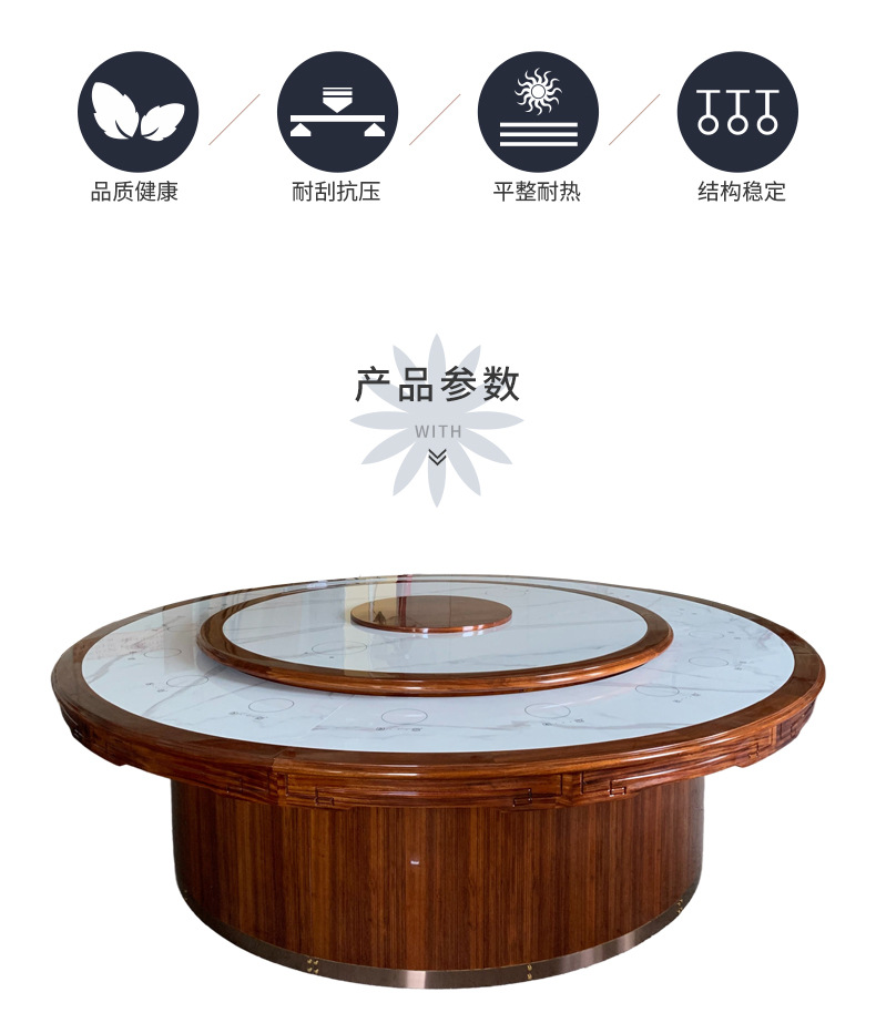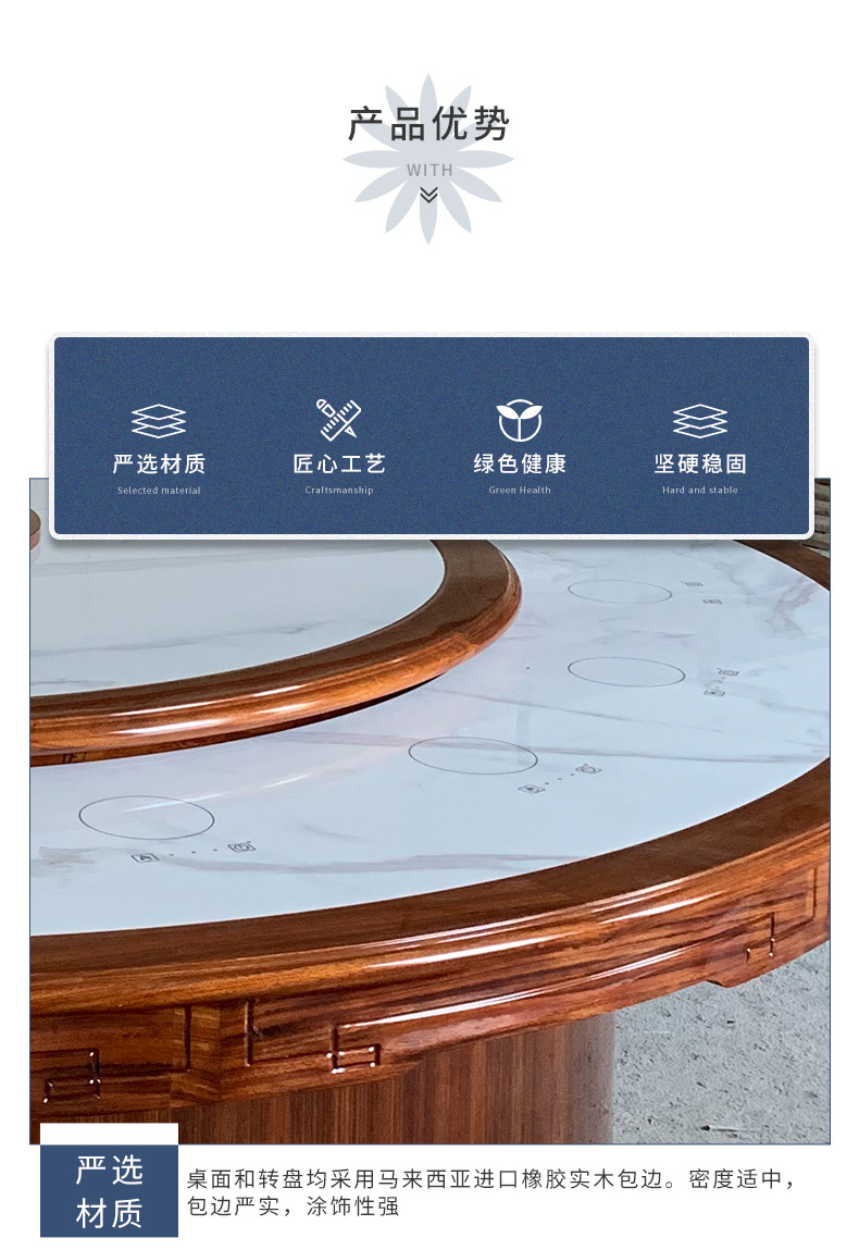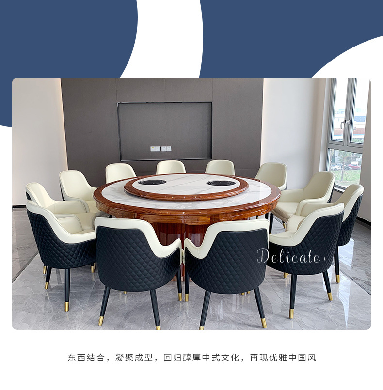 Khách sạn kiểu Trung Quốc mới bàn ăn xoay tự động gỗ nguyên khối bàn tròn lớn bàn khách sạn câu lạc bộ bàn ăn phiến đá internet nhà thiết kế nổi tiếng