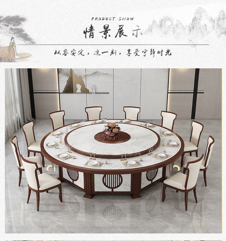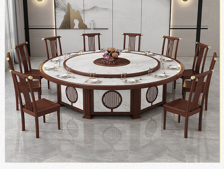 Khách sạn kiểu Trung Quốc mới bàn tròn điện lớn 15 người 20 người nhà hàng khách sạn xoay tự động bàn tròn bàn lẩu bàn ghế