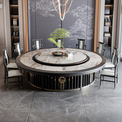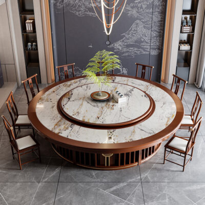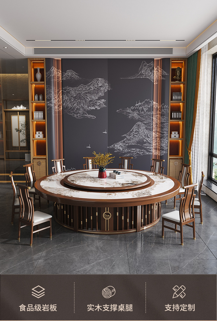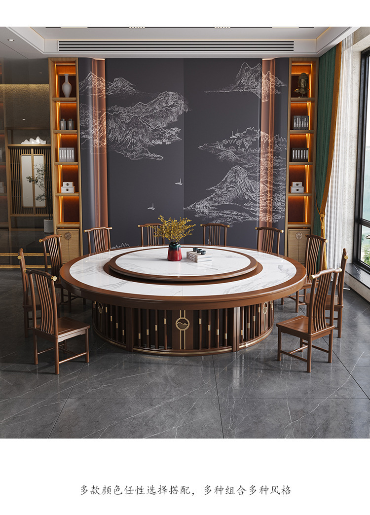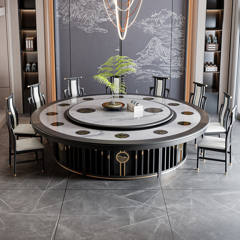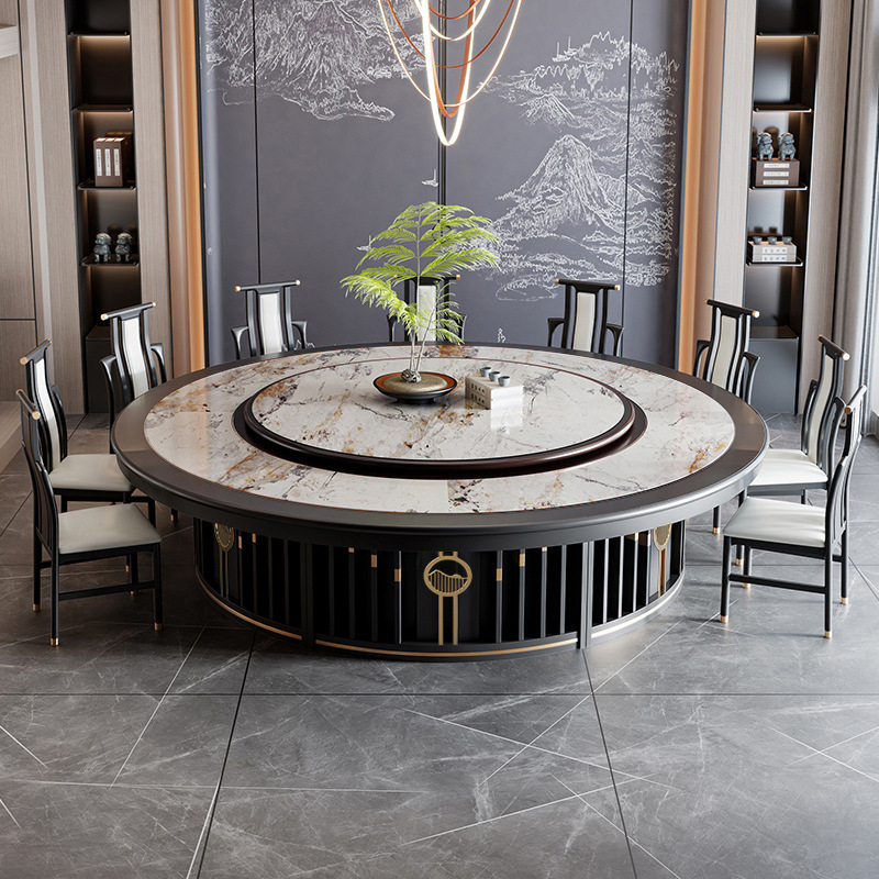 Khách sạn kiểu Trung Quốc mới điện bàn tròn lớn nhập khẩu tấm đá Bàn ăn nhà hàng câu lạc bộ Bàn ăn 20 người bàn tròn bàn gỗ – Bàn ăn nhập khẩu cao cấp