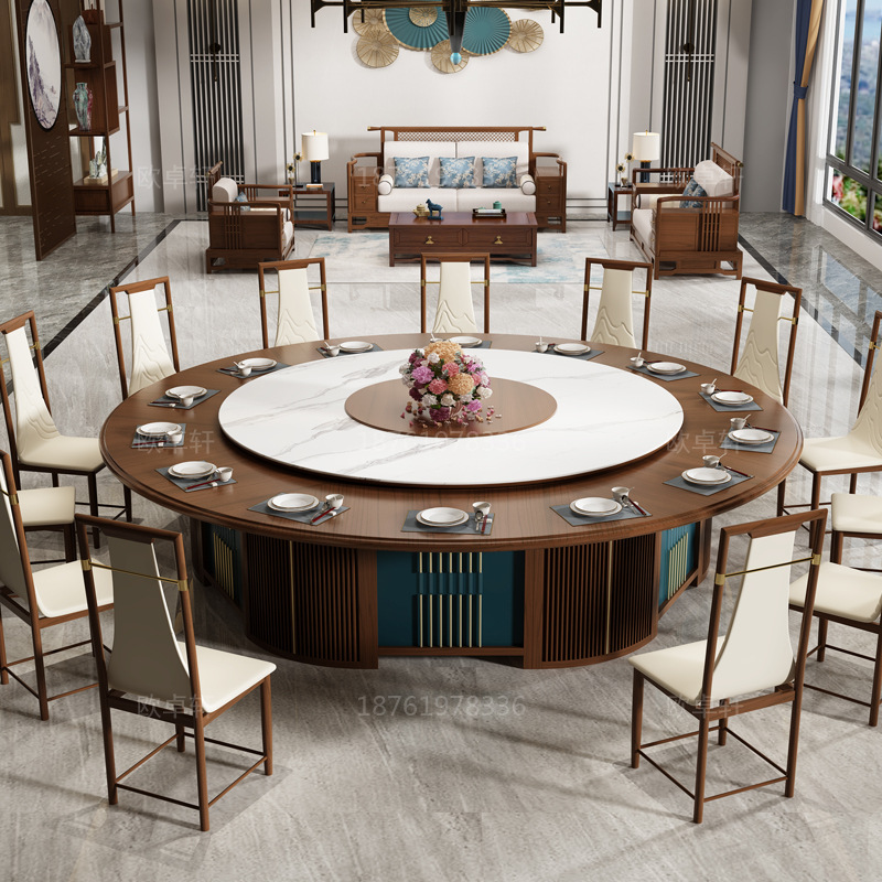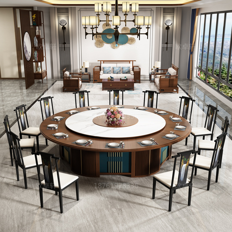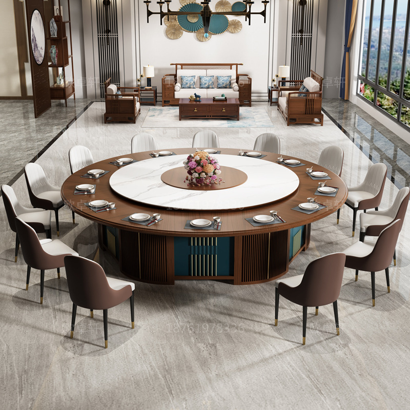 Khách sạn mới bàn ăn xoay tự động kiểu Trung Quốc bàn tròn lớn câu lạc bộ bằng đá cẩm thạch đá phiến 15 người 30 bàn lẩu vô hình có bàn xoay