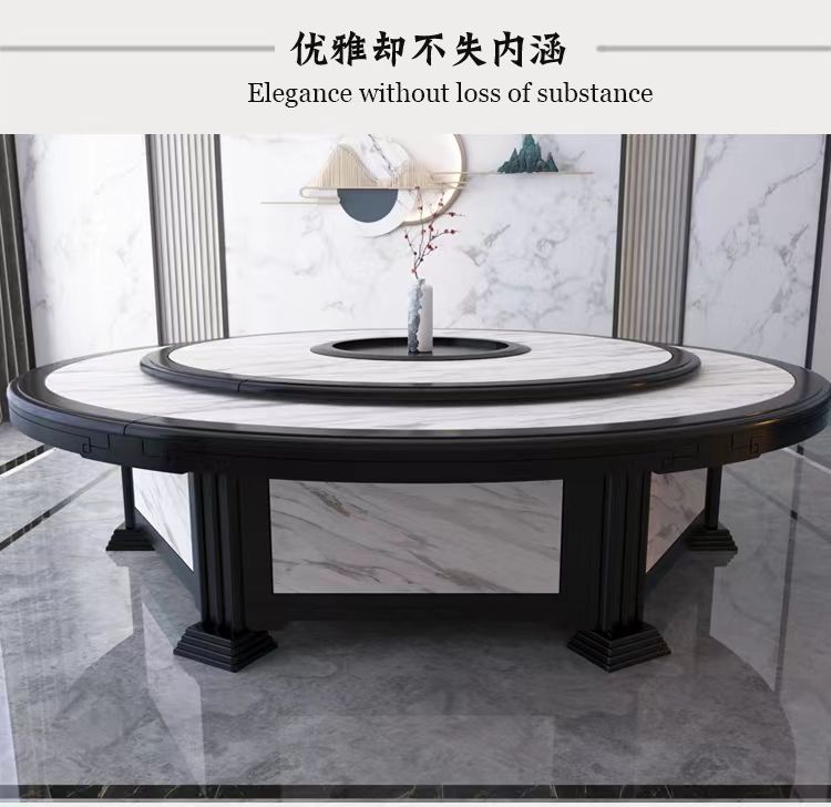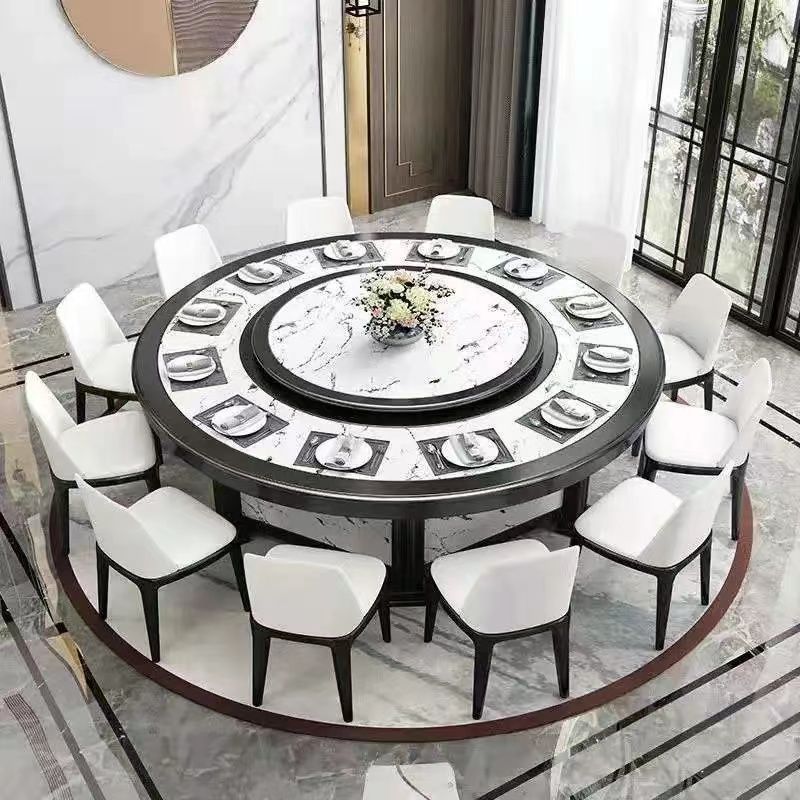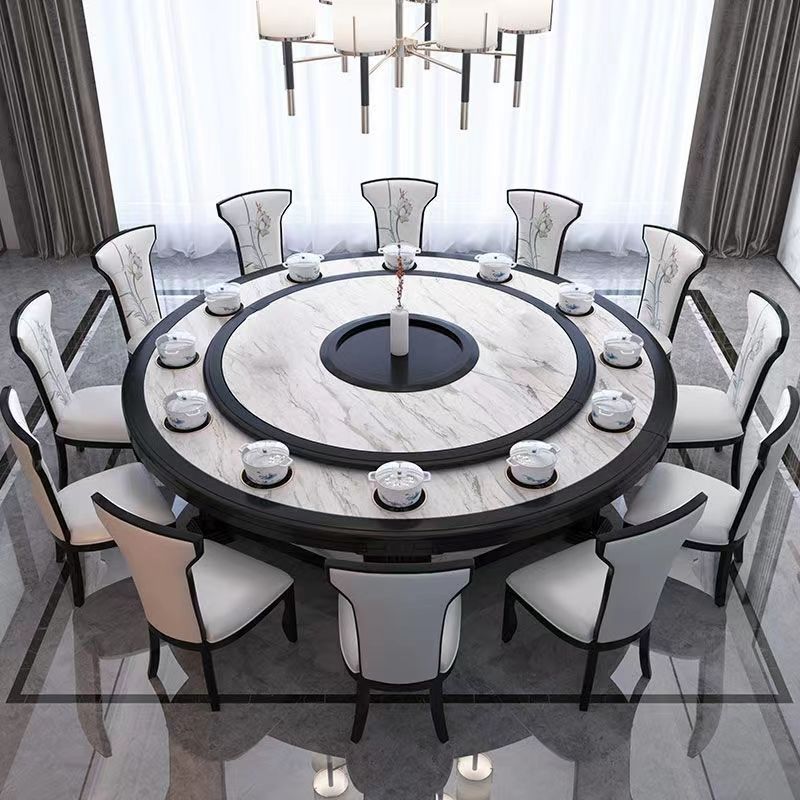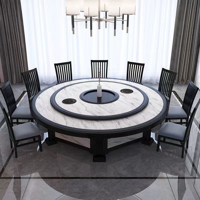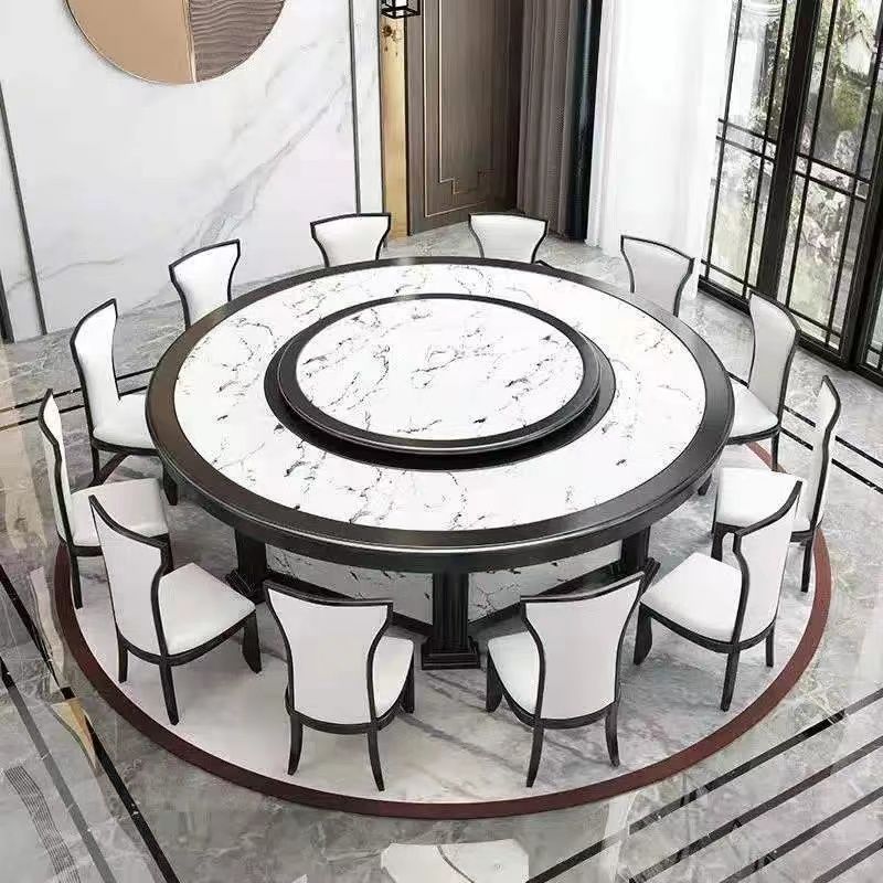 Khách Sạn Sang Trọng Bàn Ăn Điện Nhà Gỗ Mun Bàn Tròn Giả Đá Cẩm Thạch 15 Người Hộp 20 Người Bàn Tròn Xoay – Bàn ăn nhập khẩu cao cấp