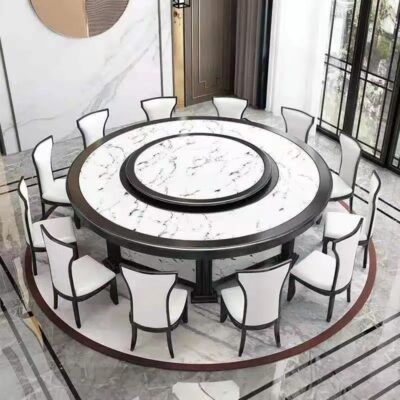 Khách Sạn Sang Trọng Bàn Ăn Điện Nhà Gỗ Mun Bàn Tròn Giả Đá Cẩm Thạch 15 Người Hộp 20 Người Bàn Tròn Xoay là sản phẩm nổi bật trong dòng bàn ăn nhập khẩu, thiết kế hiện đại và sang trọng, phù hợp với nhiều không gian nội thất cao cấp.
