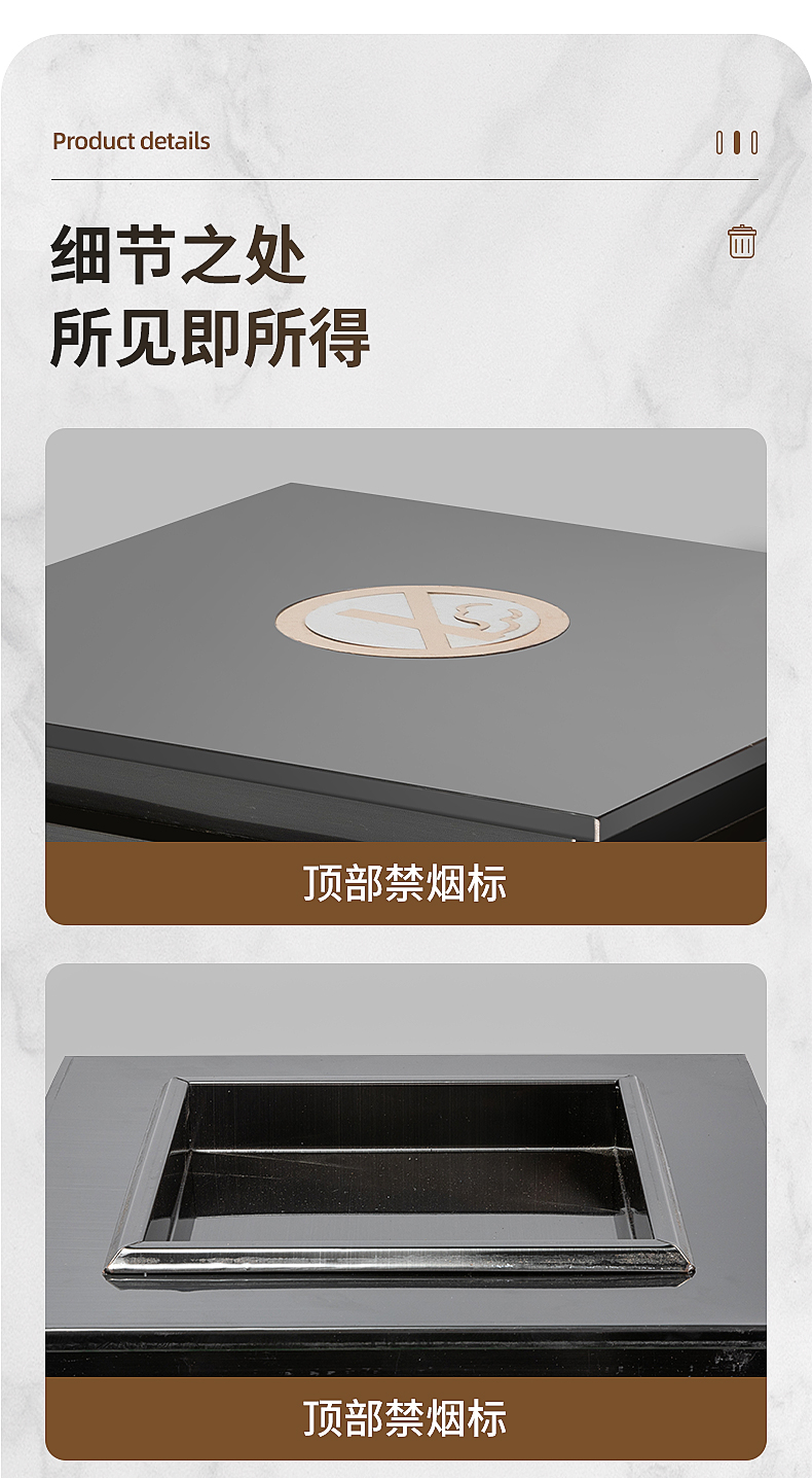 Khách sạn trung tâm mua sắm thùng rác thùng rác thương mại tùy chỉnh thang máy sảnh bằng thép không gỉ thẳng đứng với hộp đựng gạt tàn ngoài trời