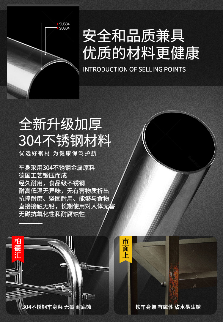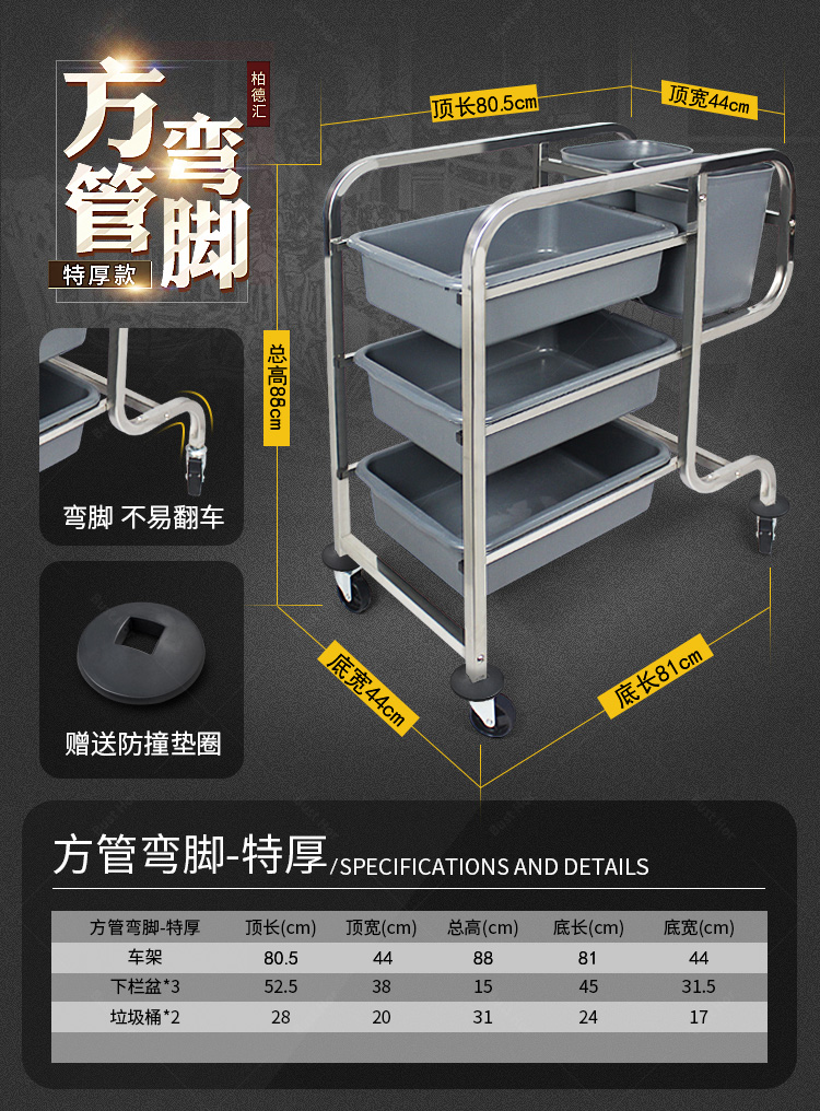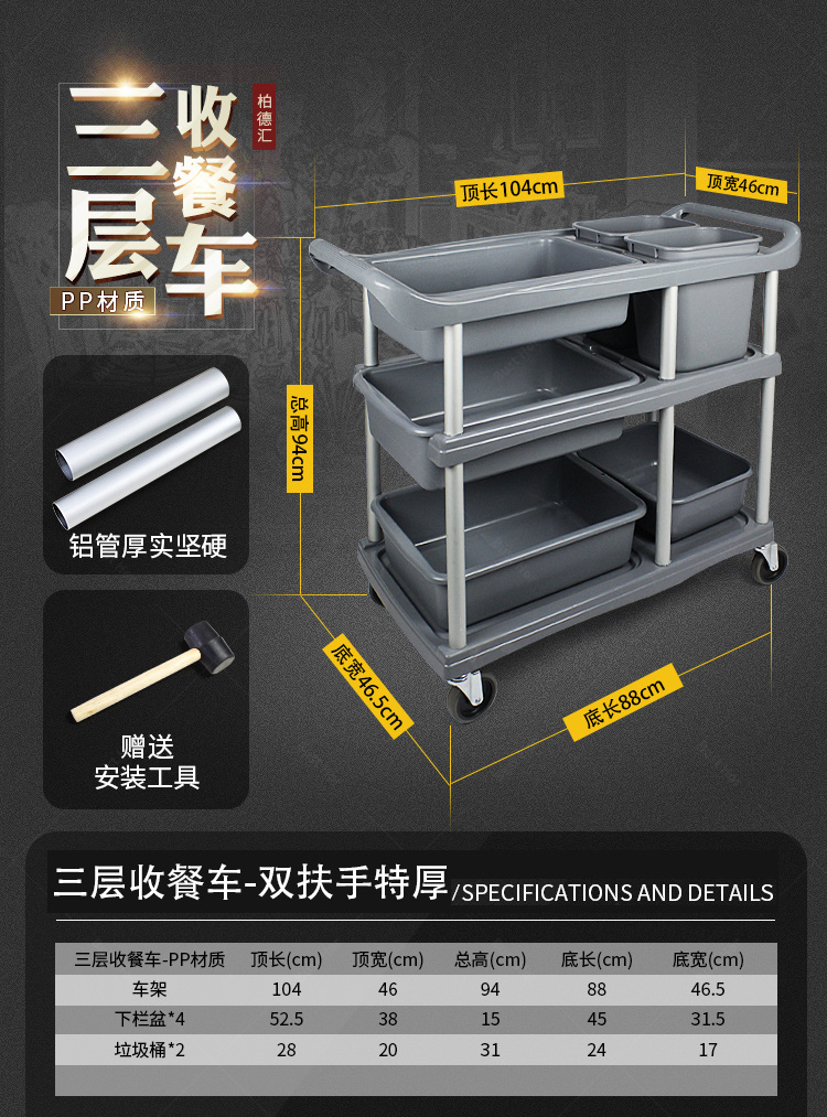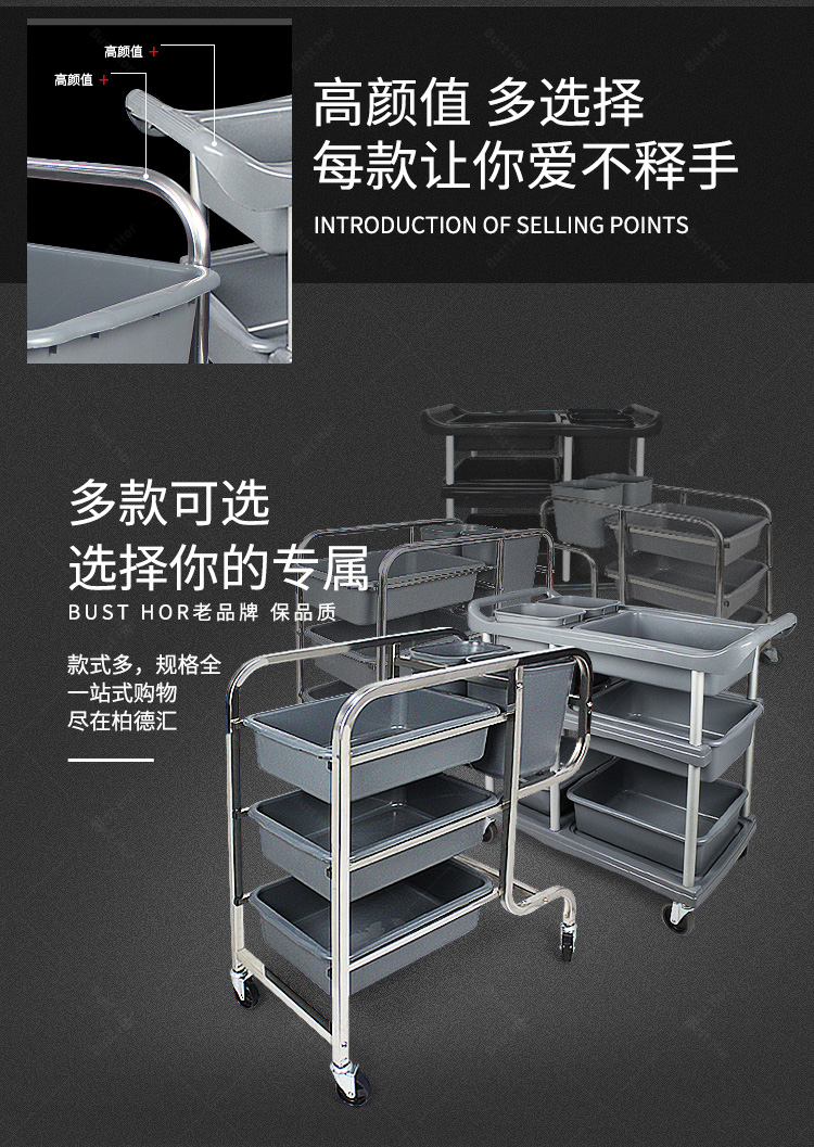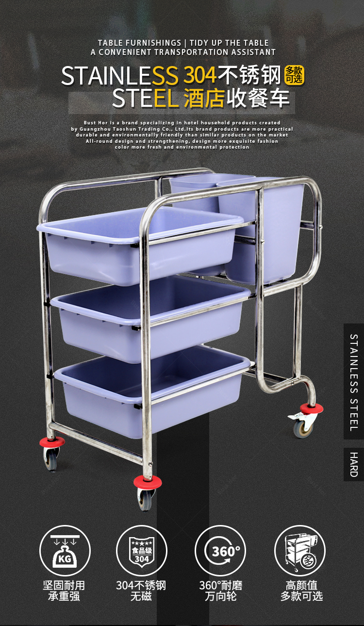Khách sạn xe đẩy thép không gỉ ba lớp xe đẩy ăn uống xe đẩy đĩa ăn thương mại xe ô tô ăn uống nhà hàng nhà hàng rút tiền