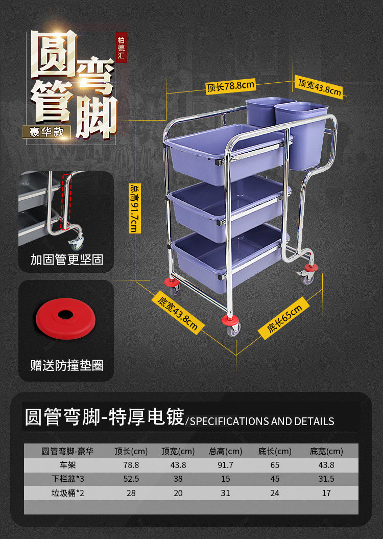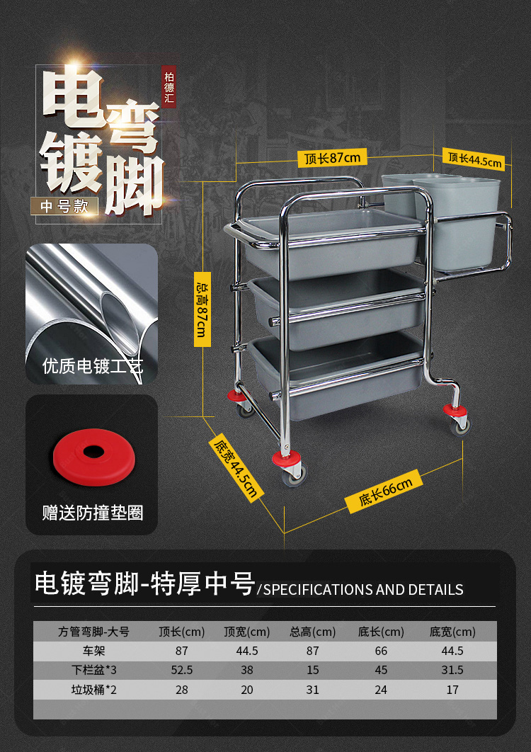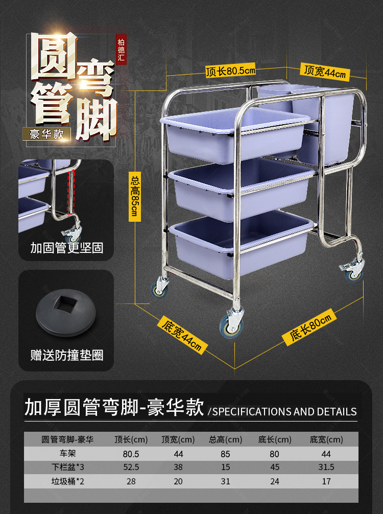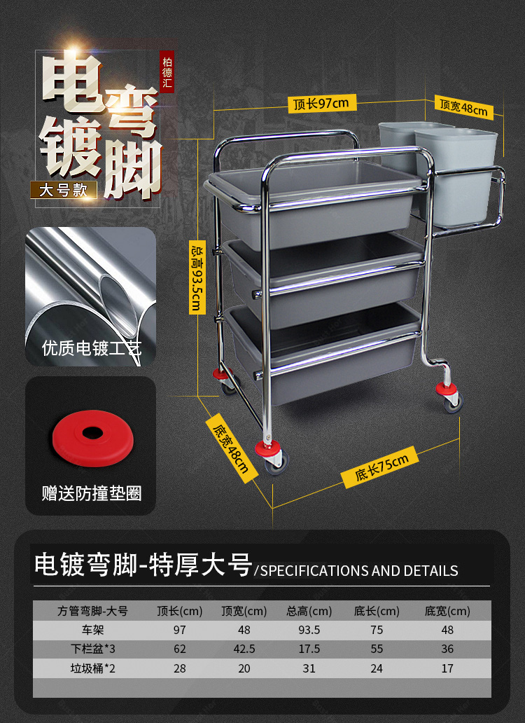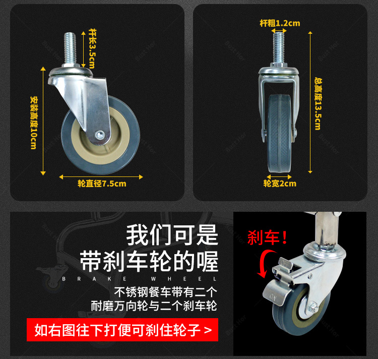 Khách sạn xe đẩy thép không gỉ ba lớp xe đẩy ăn uống xe đẩy đĩa ăn thương mại xe ô tô ăn uống nhà hàng nhà hàng rút tiền