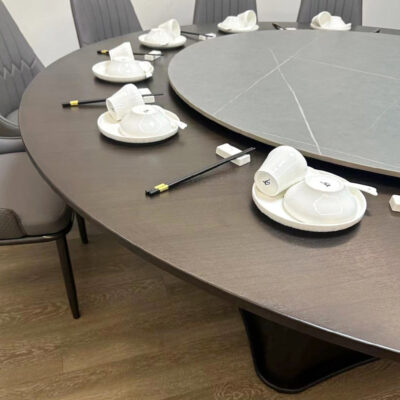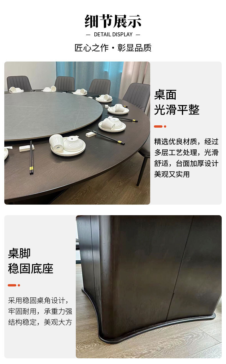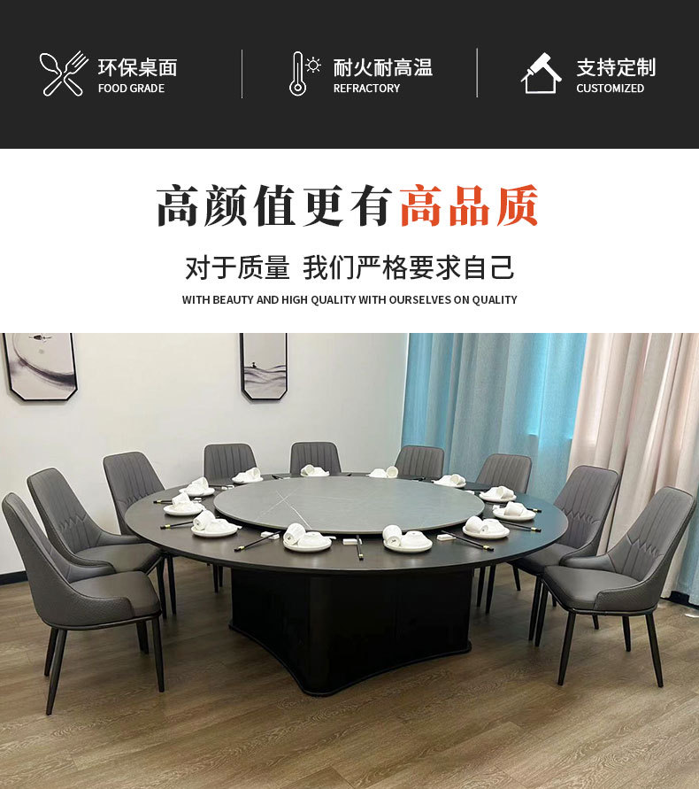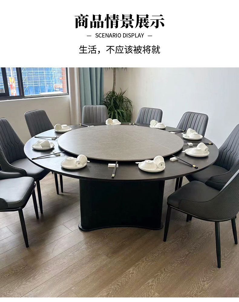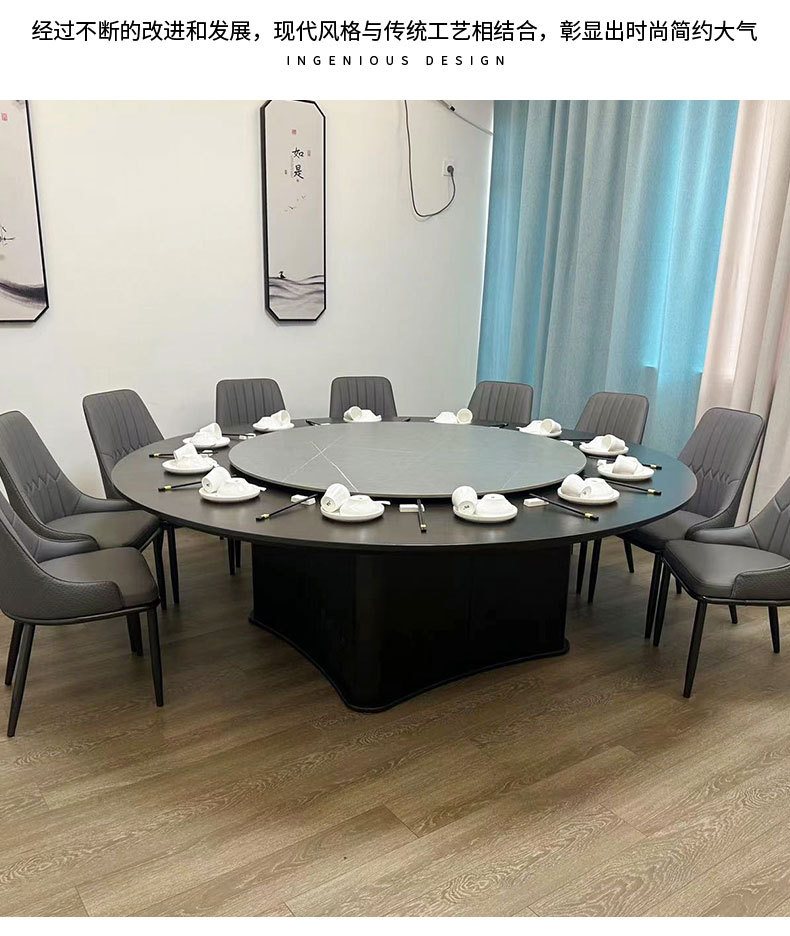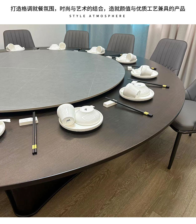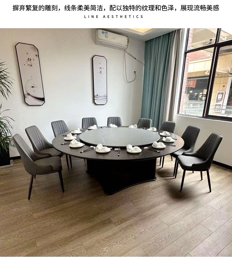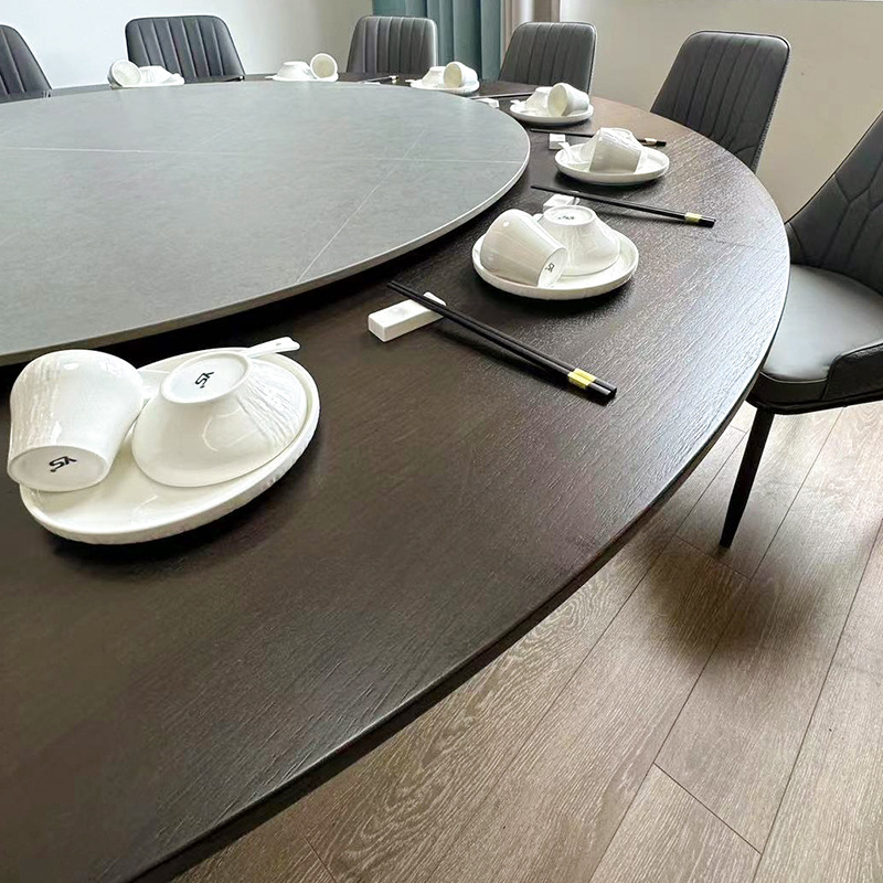 Khách sạn Yuanhaohao Bàn tròn xoay tự động kiểu Trung Quốc mới Gỗ nguyên khối đơn giản có bàn xoay Bàn tròn lớn Bàn ăn kết hợp ghế