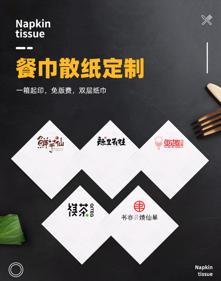 Khăn ăn giấy tùy chỉnh có thể in logo nhà hàng mang đi quảng cáo đặc biệt khăn ăn vuông khăn ăn đặt hàng túi nhỏ vẽ giấy toàn bộ hộp thương mại
