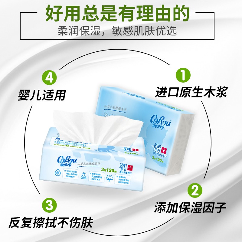Khăn giấy em bé Kexinrou V9 120 bơm 16 gói nguyên hộp kem mềm khăn giấy mặt ẩm giấy mây mềm khăn gói gia đình