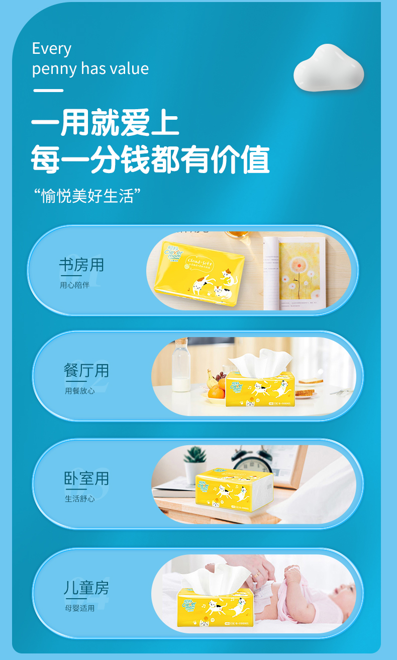 Khăn giấy mẹ Clevermom Cong gói lớn giấy vệ sinh gia đình nguyên hộp cả hộp bơm khăn ăn lớn giá cả phải chăng