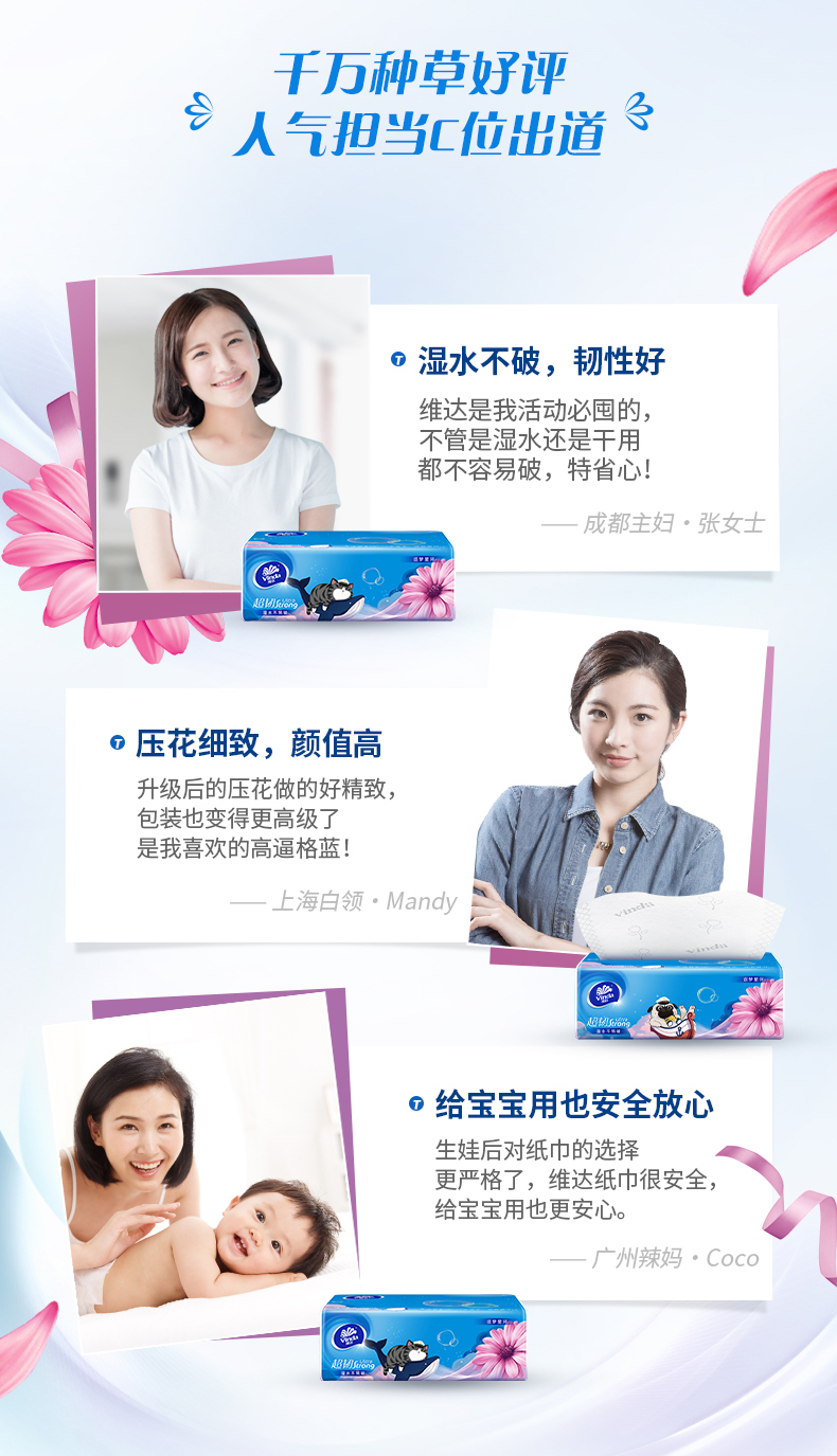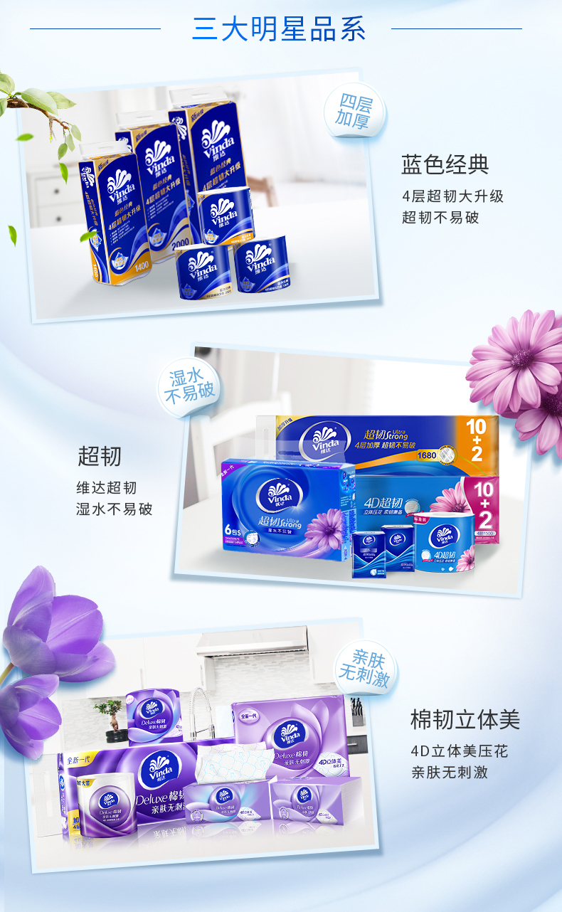 Khăn giấy Vida siêu dai Wuhuang IP bơm giấy lau mặt có thể được làm ướt bằng nước nhà FCL gói giá cả phải chăng 100 bơm 3 lớp 24 gói