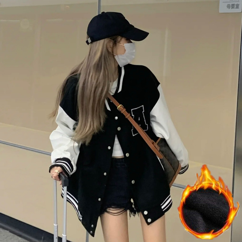 Khăn thêu đồng phục bóng chày nữ mùa thu đông Ins Tide phiên bản Hàn Quốc all-match bf lazy wind plus nhung dày dặn áo khoác