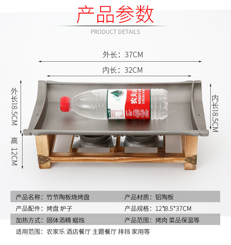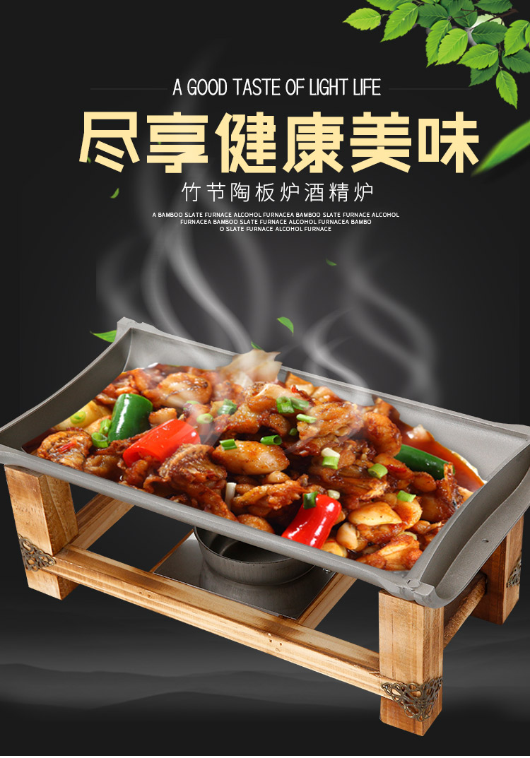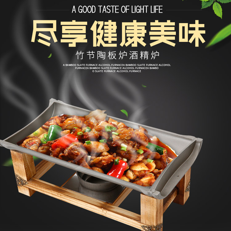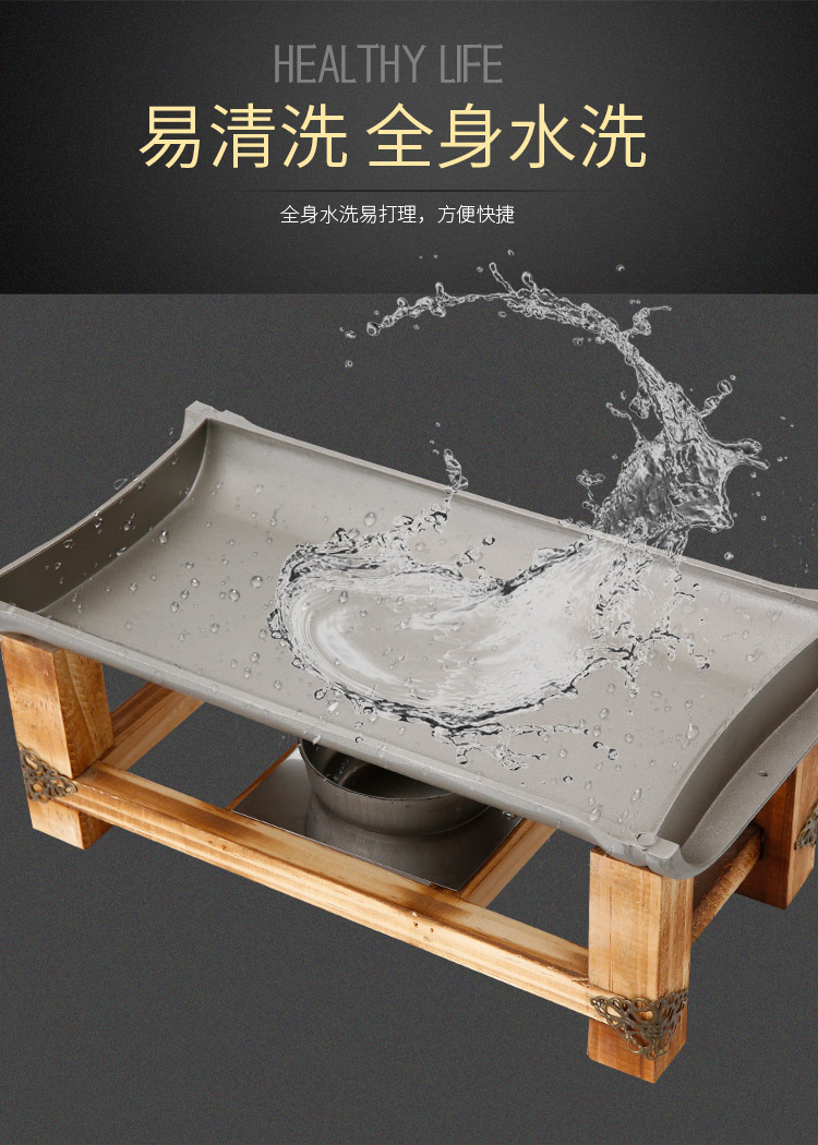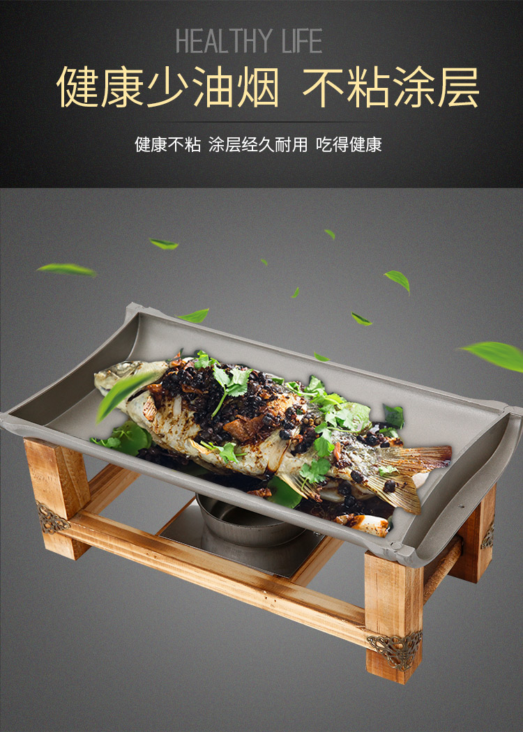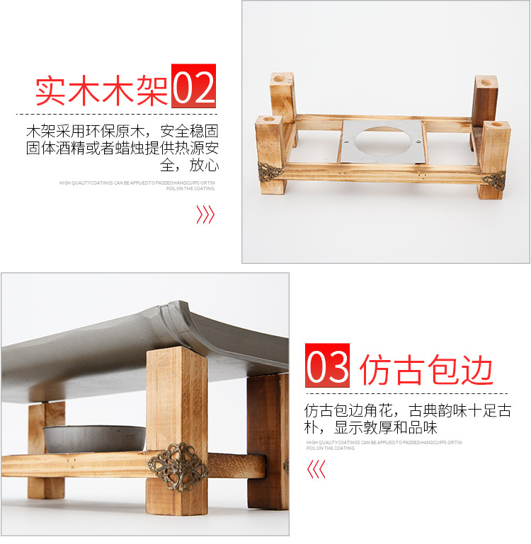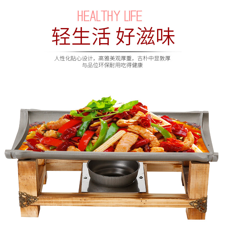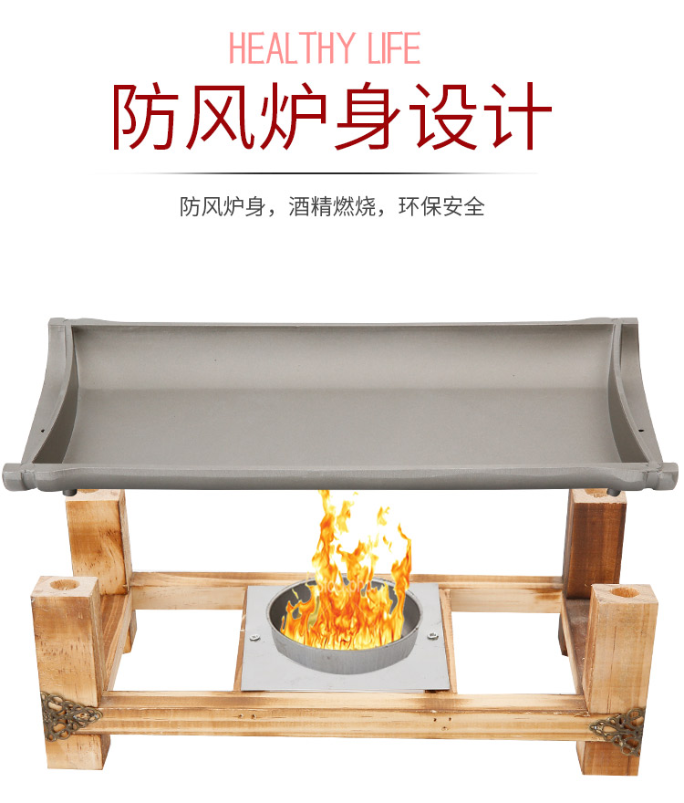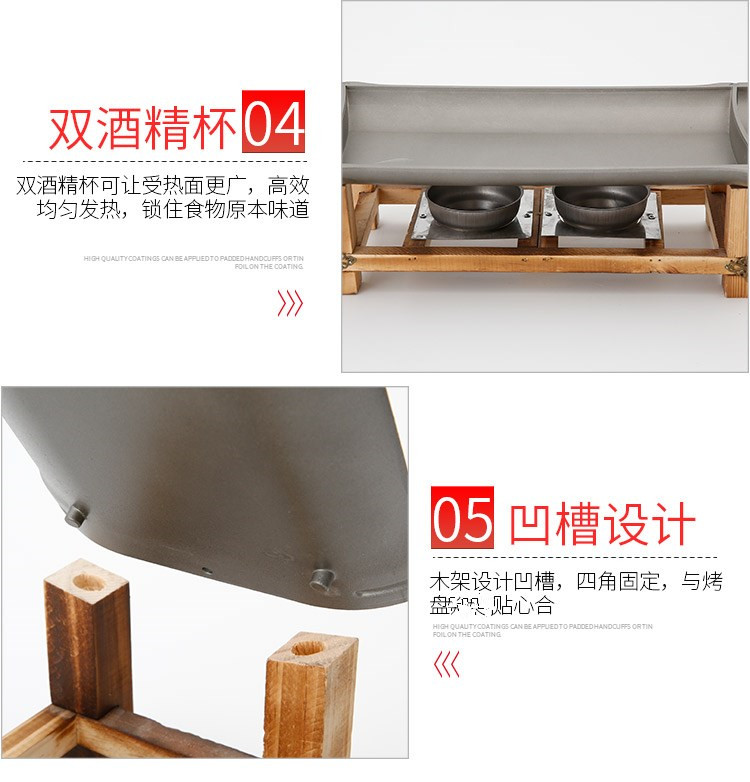 Khay nướng cồn chống dính khung gỗ hình chữ nhật.
