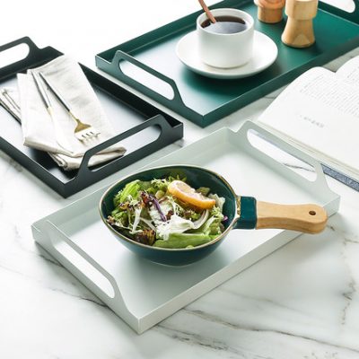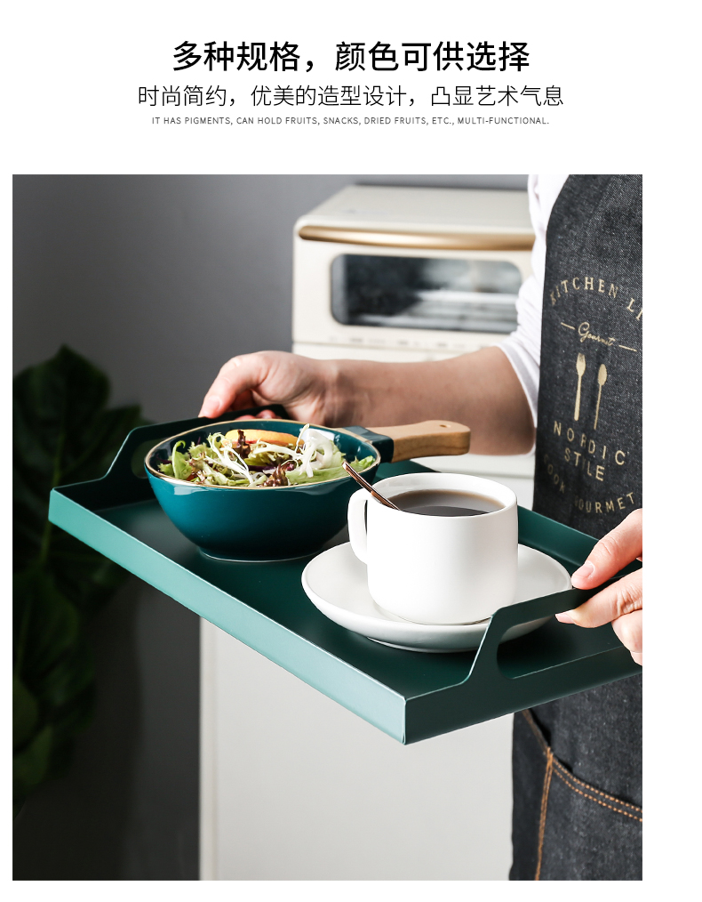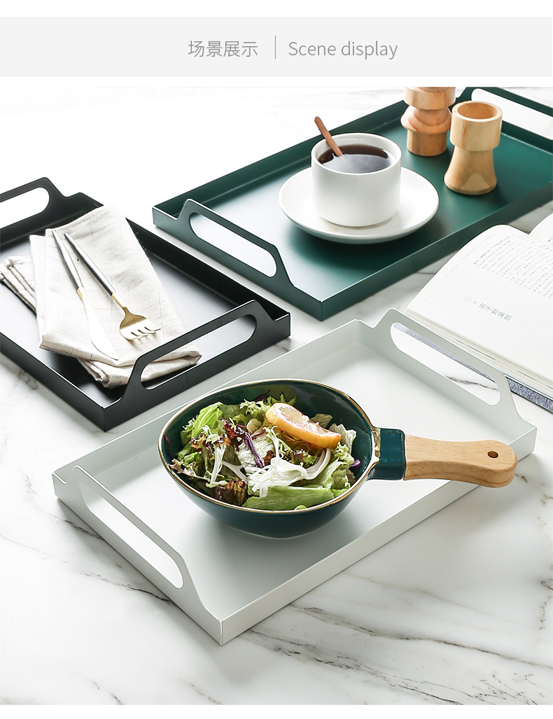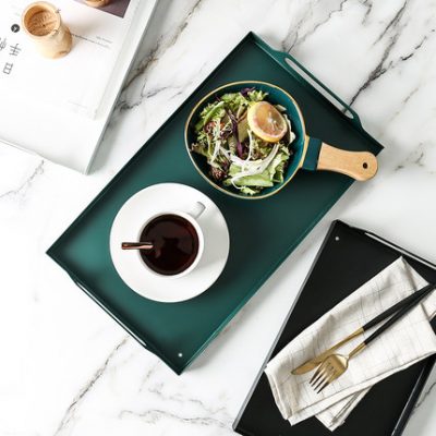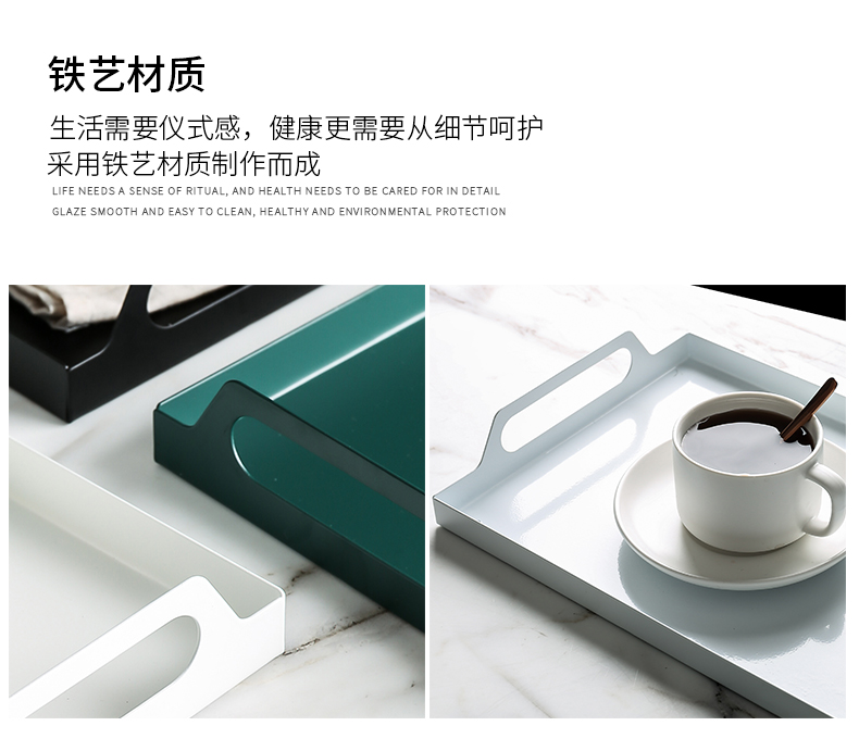 Khay sắt rèn hình chữ nhật Bắc Âu ánh sáng sắt rèn sang trọng phòng khách phòng khách tách trà đồ ăn nhẹ khay trà để bàn khay lưu trữ.
