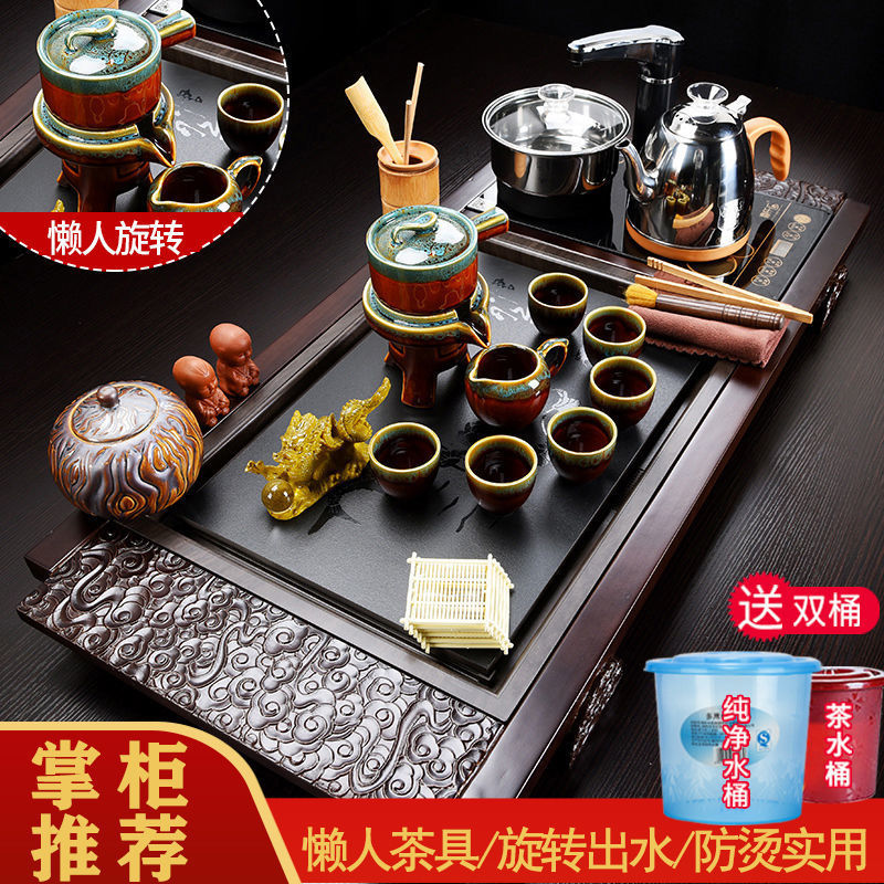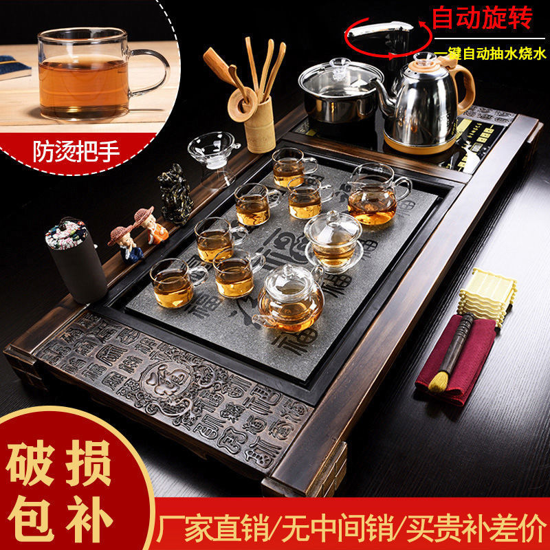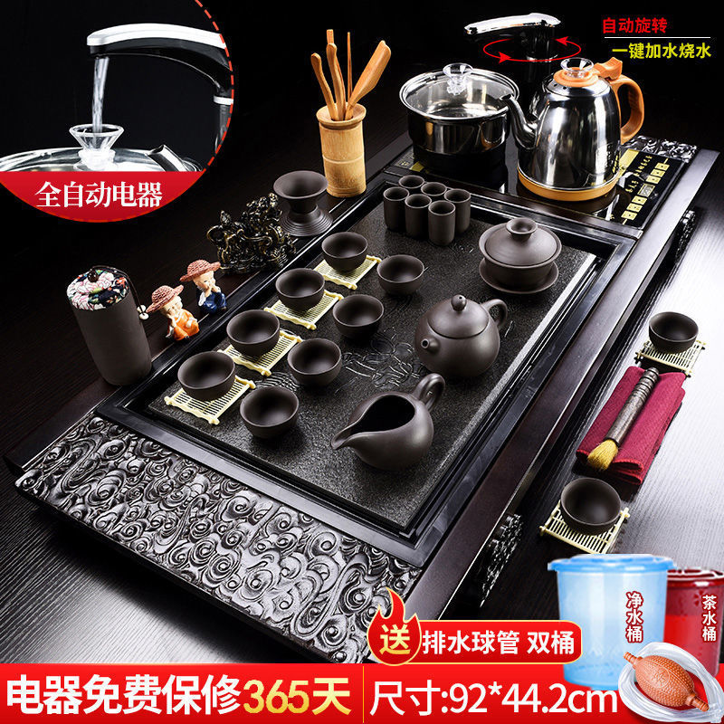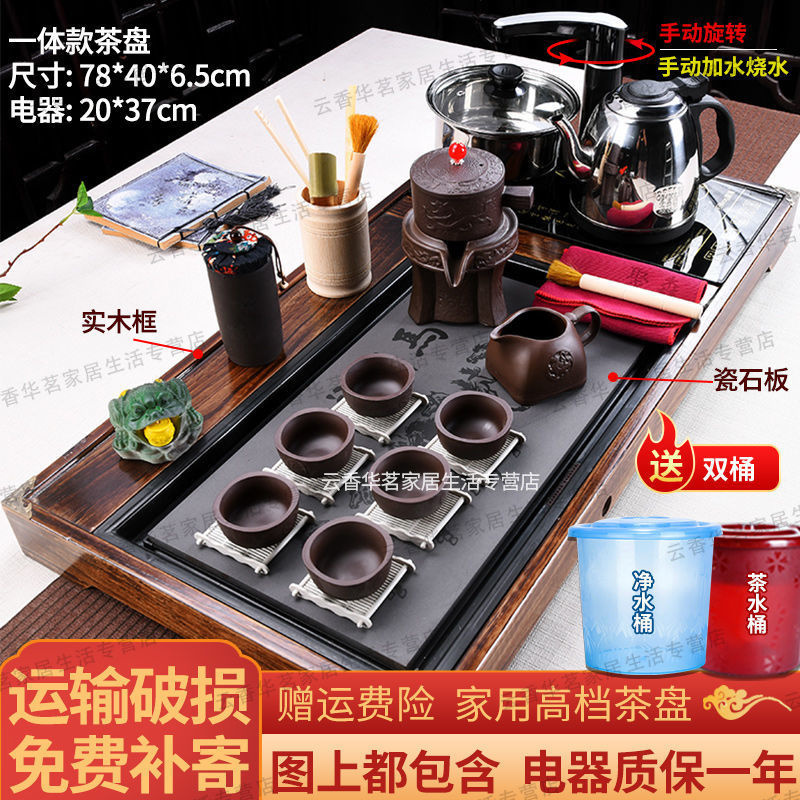 Khay trà tất cả trong một gỗ nguyên khối bộ một bàn trà trà lớn biển bếp đun trà điện hộ gia đình cát tím kung fu bộ ấm trà