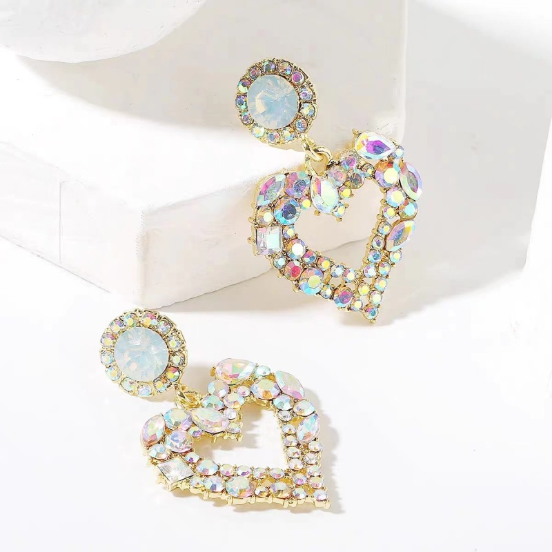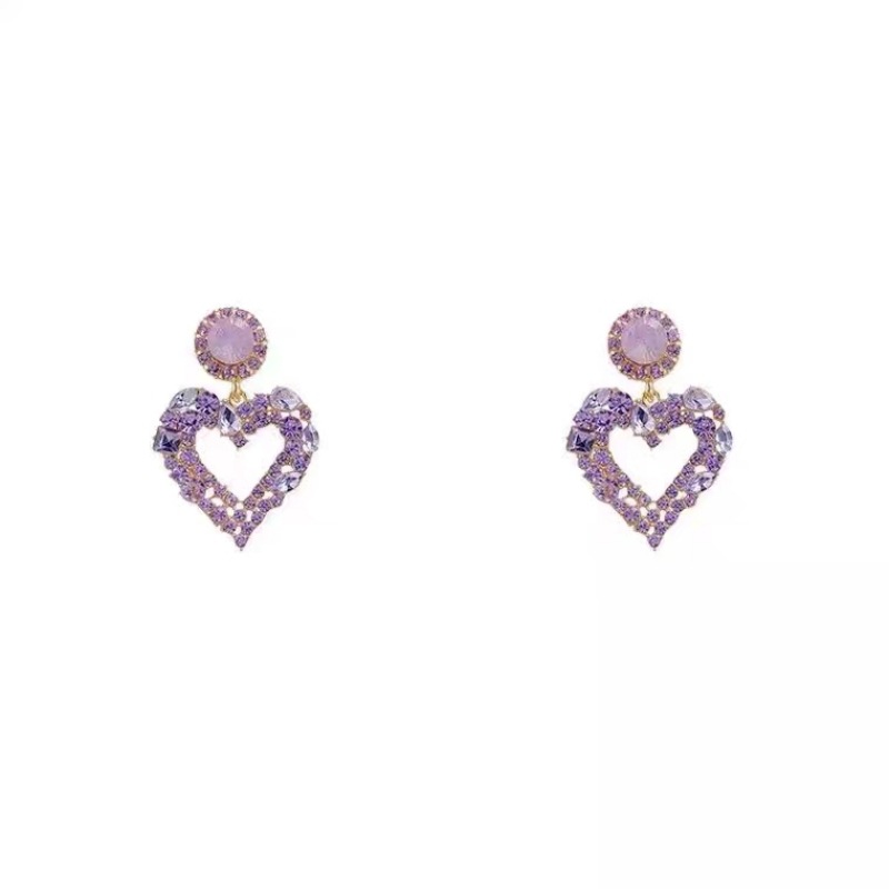 Khí chất châu Âu và Mỹ bông tai trái tim cao cấp bông tai kim bạc phóng đại thiết kế thích hợp màu tím rhinestone tai trang sức bán buôn