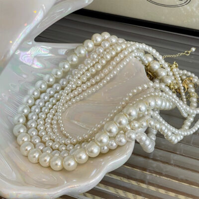 Khí chất dịu dàng vòng cổ ngọc trai nữ mùa hè ánh sáng retro sang trọng thích hợp vòng cổ lưới màu đỏ cảm giác cao cấp chuỗi xương đòn xếp chồng lên nhau
