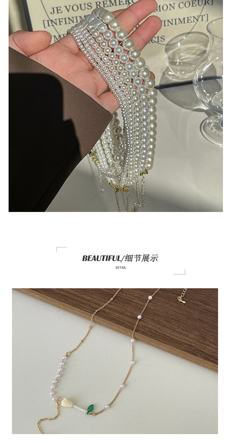 Khí chất dịu dàng vòng cổ ngọc trai nữ mùa hè ánh sáng retro sang trọng thích hợp vòng cổ lưới màu đỏ cảm giác cao cấp chuỗi xương đòn xếp chồng lên nhau
