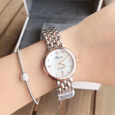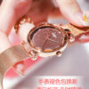 Khí Quyển Mới Đồng Hồ Nữ Xu Hướng Hàn Quốc Lưới Màu Đỏ Nhỏ Đơn Giản Dây Thép Kim Cương Thường Ngày Đồng Hồ Nữ Thạch Anh Chống Thấm Nước