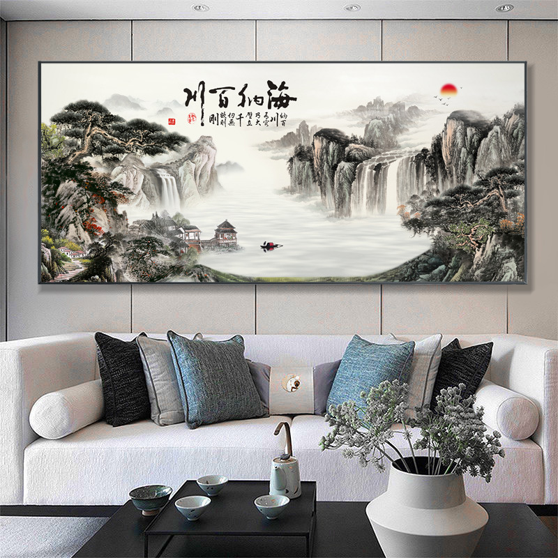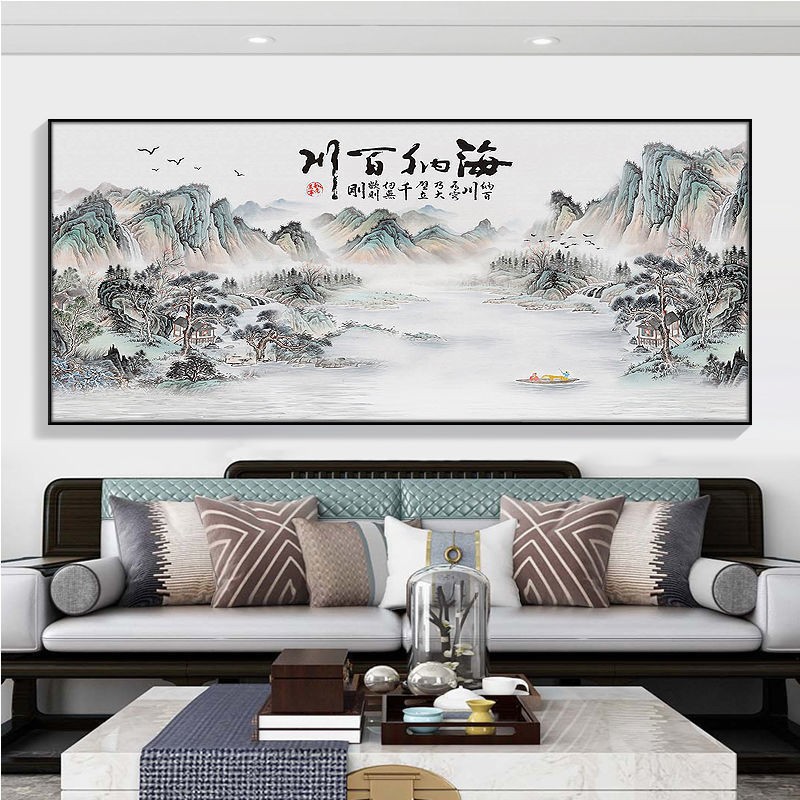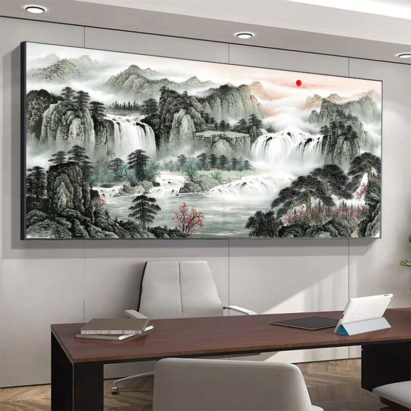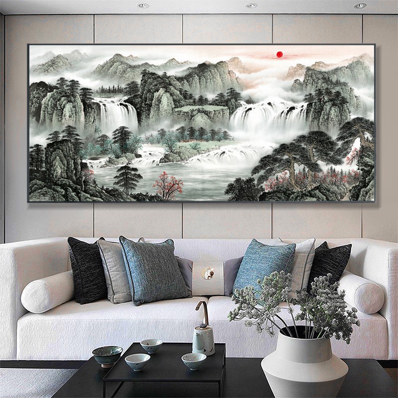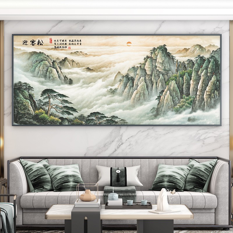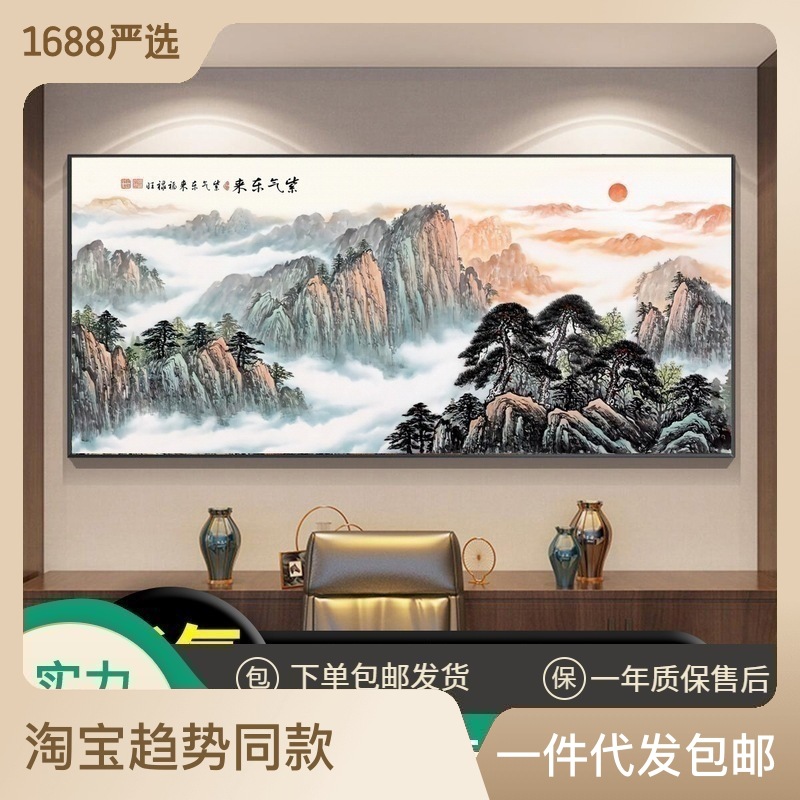Khí tím phía đông ủng hộ núi bản đồ văn phòng thư pháp và hội họa trang trí phong cảnh phong cảnh phòng khách treo tranh Trung Quốc nền sofa tranh treo tường