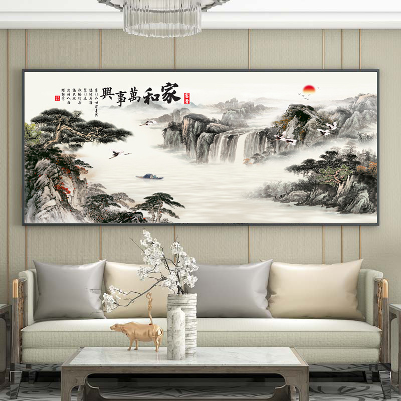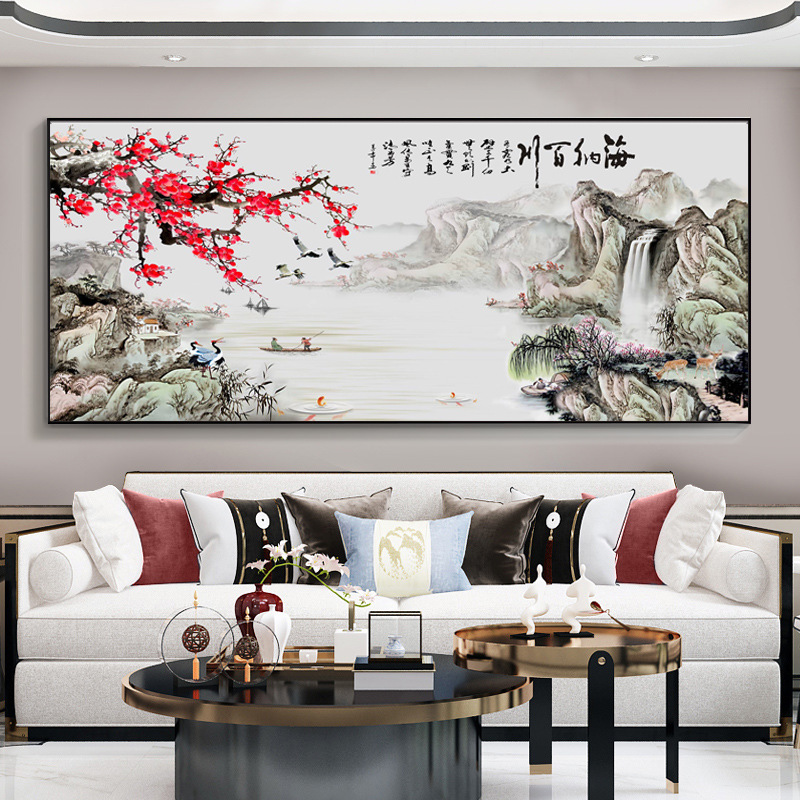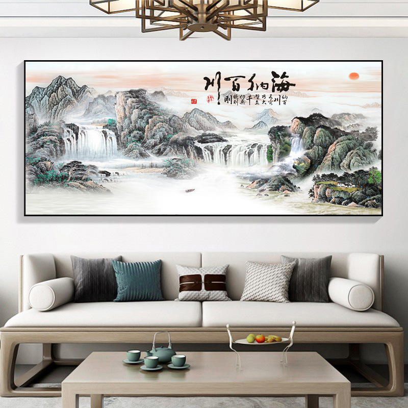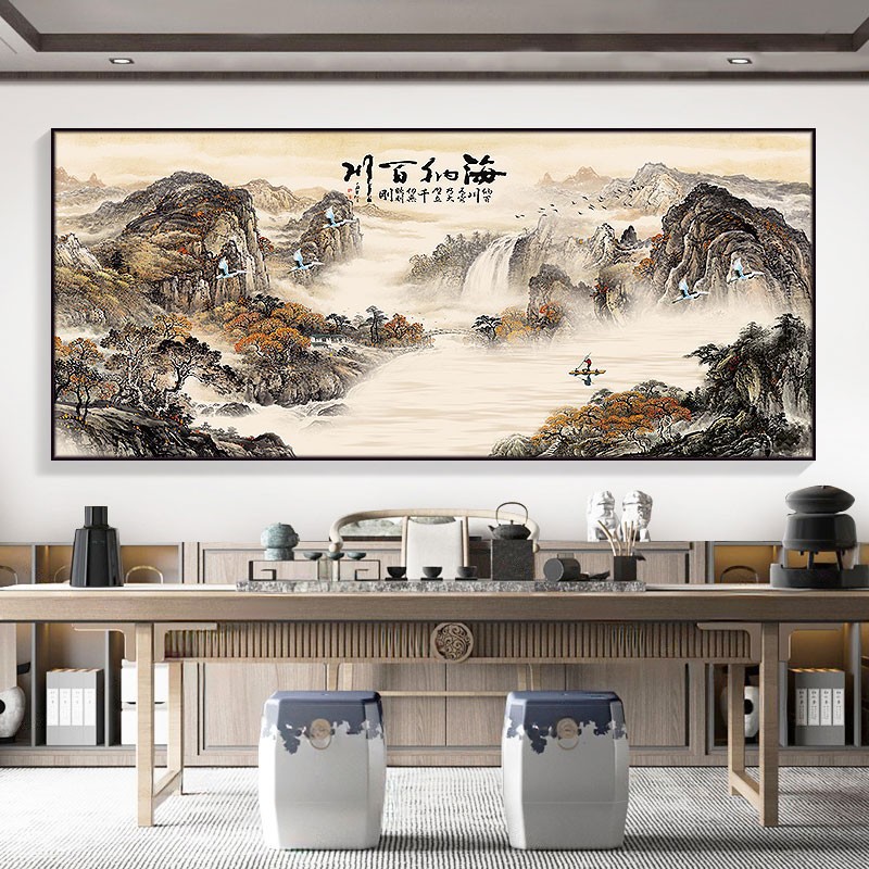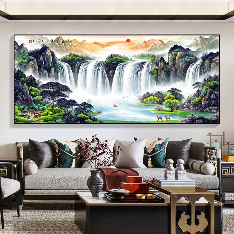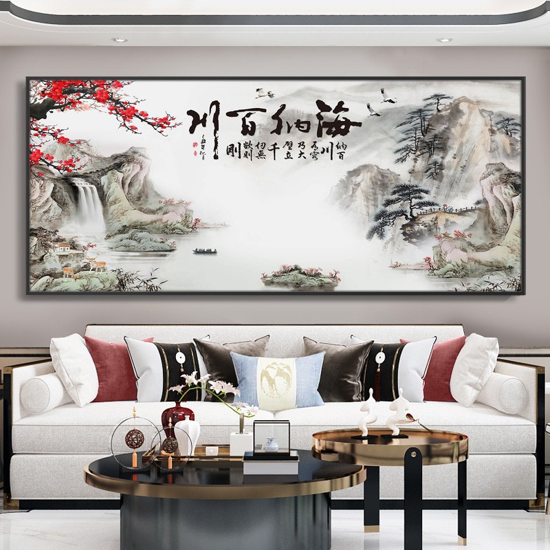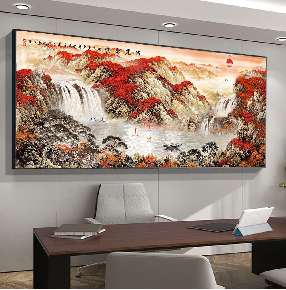 Khí tím phía đông ủng hộ núi bản đồ văn phòng thư pháp và hội họa trang trí phong cảnh phong cảnh phòng khách treo tranh Trung Quốc nền sofa tranh treo tường