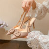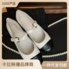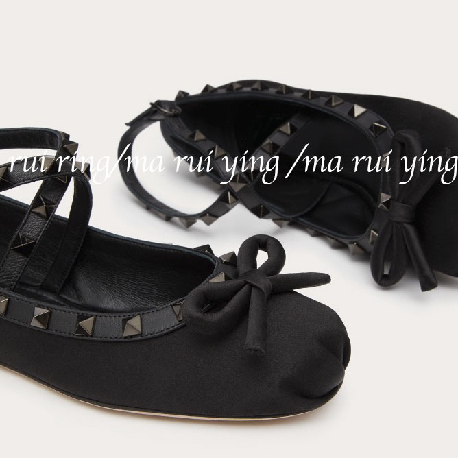 Khóa chéo giày ba lê nữ mùa hè và mùa thu 2023 mới nơ đinh tán cổ tích satin đáy phẳng miệng nông giày đơn
