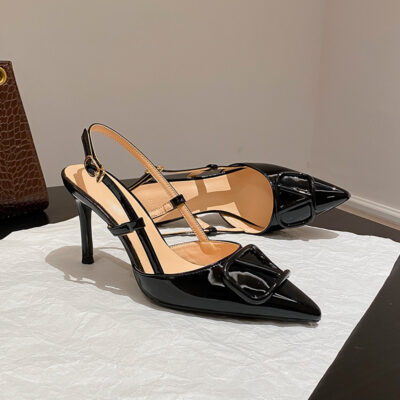 Khóa chữ V mũi nhọn màu nude giày cao gót nữ giày cao gót với Su Yinyin cùng phong cách lưới Bao Đầu gợi cảm màu đỏ xăng đan nữ