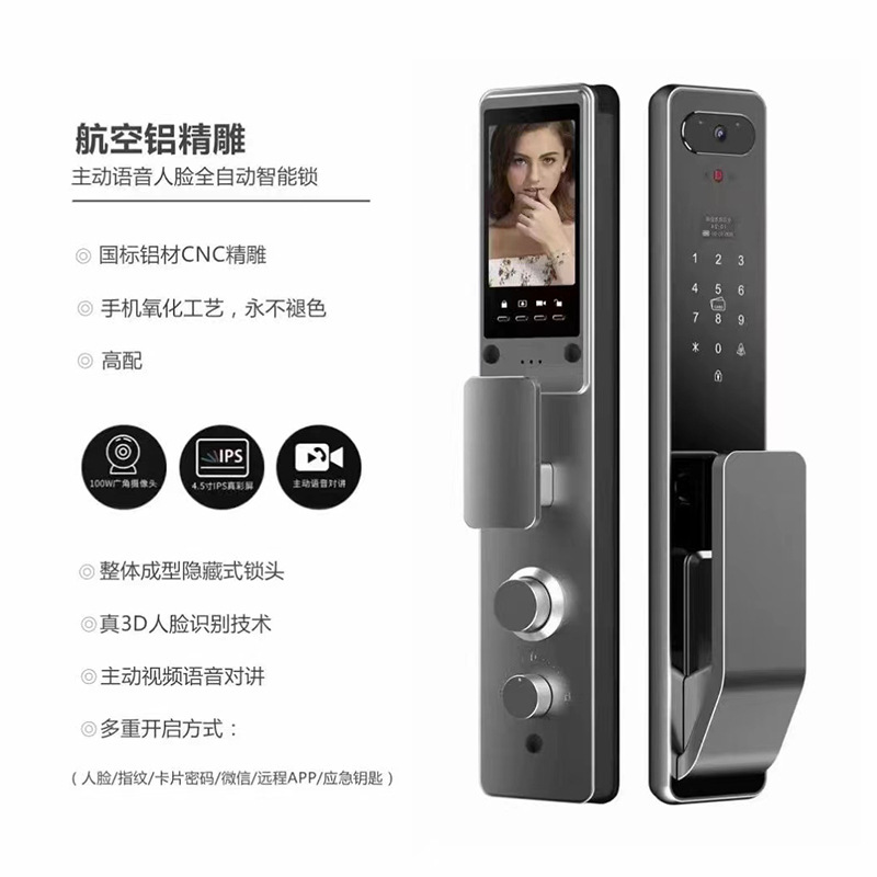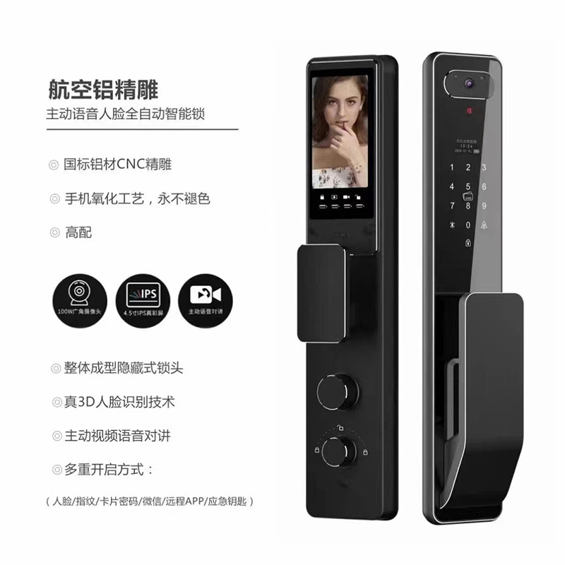 Khóa cửa chống trộm tại chỗ khóa thông minh mã khóa nhận dạng khuôn mặt 3D khóa vân tay mắt mèo trực quan khóa mã bán buôn