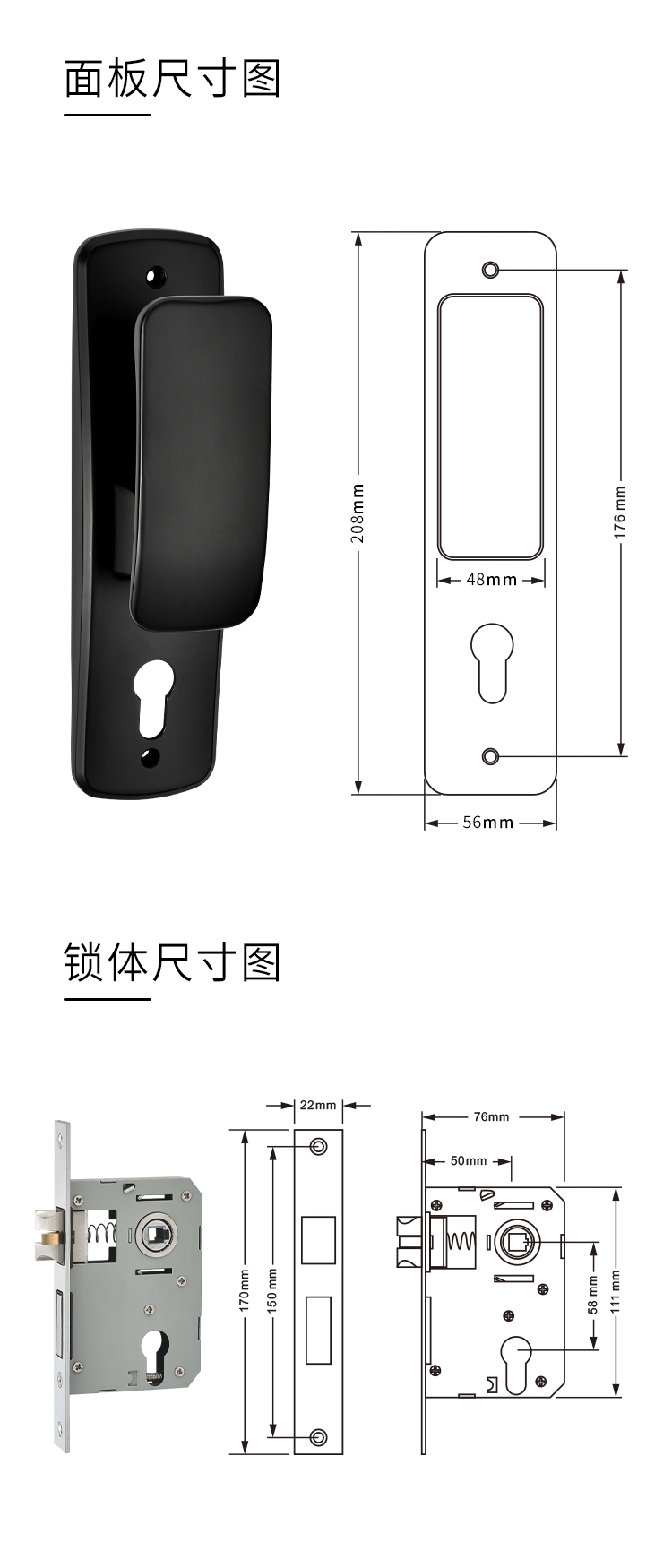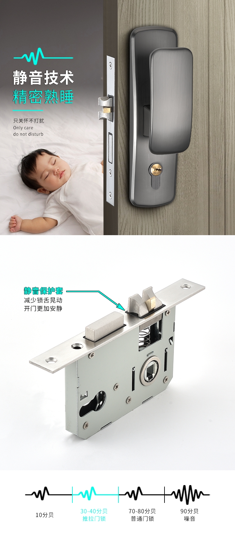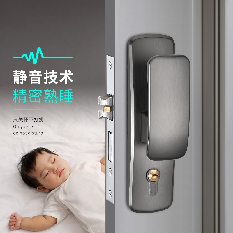 Khóa cửa đẩy trực tiếp kiểu Bắc Âu hiện đại trong nhà phòng ngủ tắt tiếng khóa cửa nhà thông dụng trước và sau khóa tay nắm cửa bằng gỗ đẩy