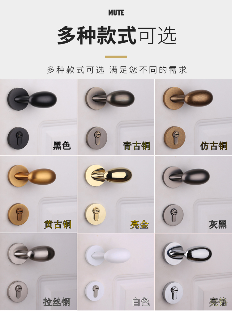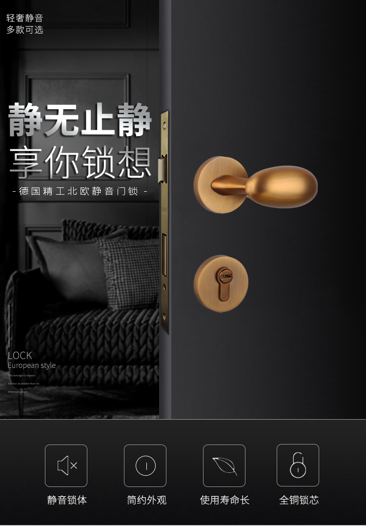 Khóa cửa Eberly Mỹ đơn giản ánh sáng sang trọng hình cầu hình bầu dục phổ quát phòng ngủ gỗ rắn tay nắm cửa khóa cửa câm