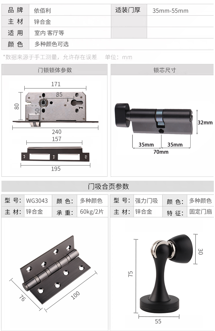默认发双保险85锁体,需要静音磁吸锁体拍下注明或联系客服