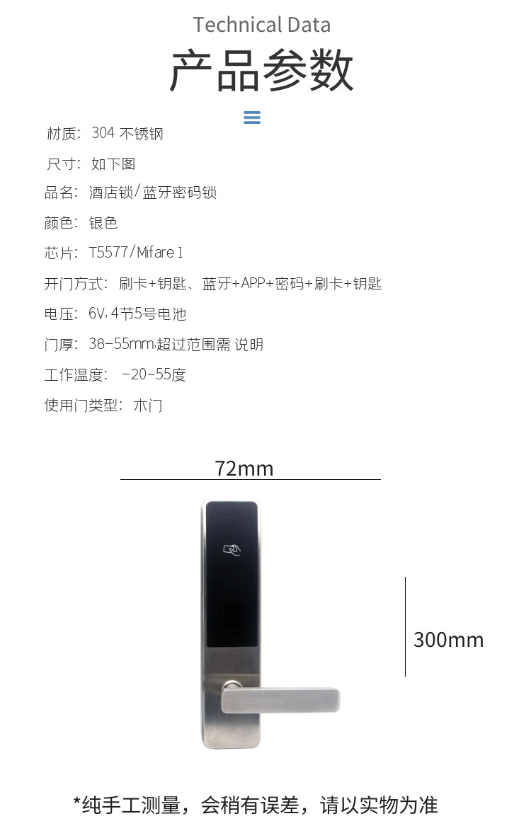 Khóa cửa khách sạn bằng Inox 304 khóa thẻ quẹt khóa khách sạn APP di động khóa kết hợp căn hộ bluetooth