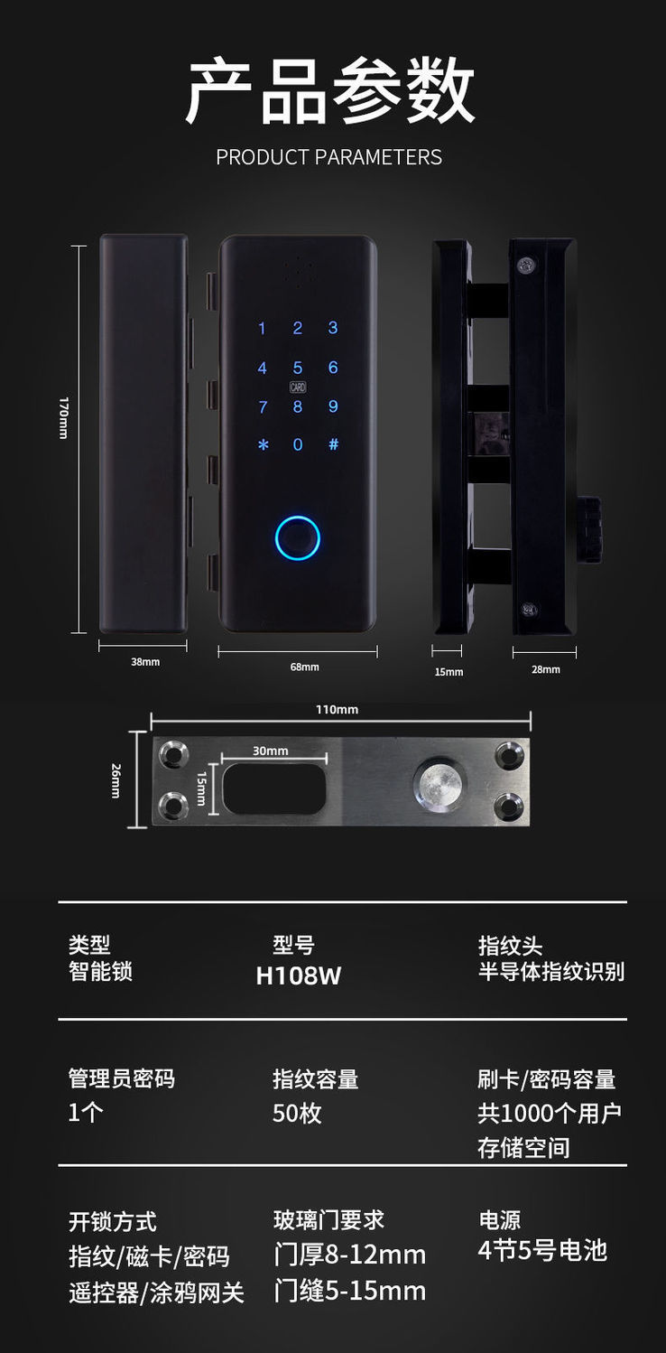 Khóa cửa kính văn phòng kéo đẩy mật khẩu cửa đơn và cửa đôi miễn phí mở khóa thẻ điện tử Bán buôn Amazon thay mặt cho