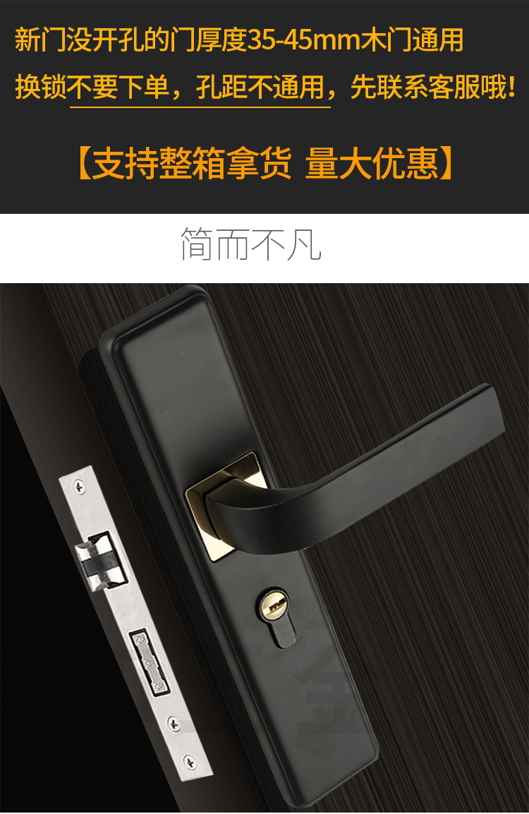 Khóa cửa màu đen trong nhà phòng ngủ từ tính im lặng đôi khóa cửa đôi tay cầm chắc chắn đảo ngược khóa bộ nhà