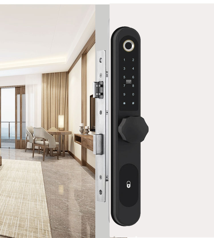 Khóa cửa nhôm vân tay mật khẩu quẹt thẻ điện tử thông minh khóa chống trộm sân cửa trượt kéo đẩy hợp kim cửa khung hẹp tay nắm tròn