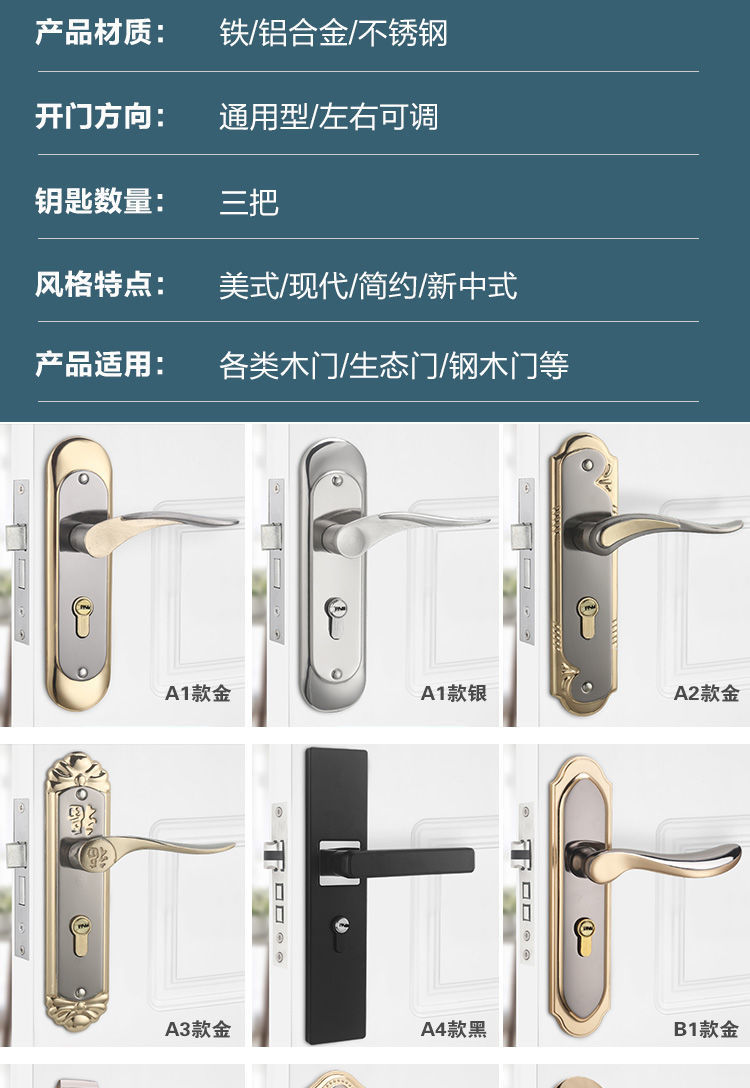 Khóa cửa phòng ngủ nhà không ồn Khóa cửa phòng miễn phí đấm cửa khóa trong nhà Khóa cửa phổ khóa khóa. Khóa cửa nhập khẩu theo yêu cầu.