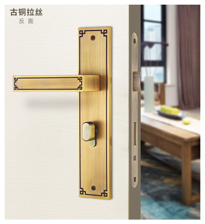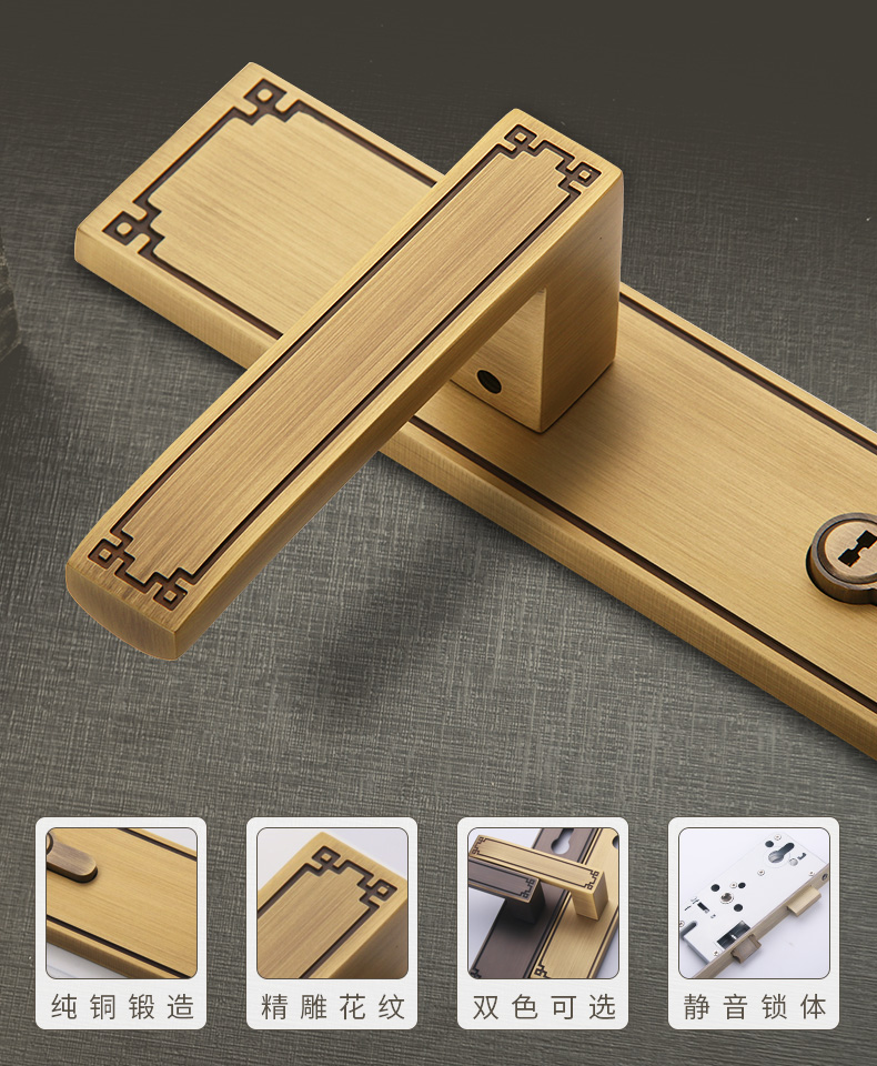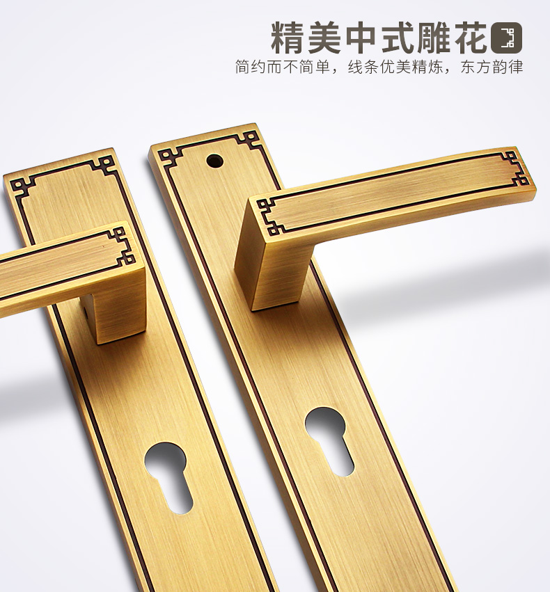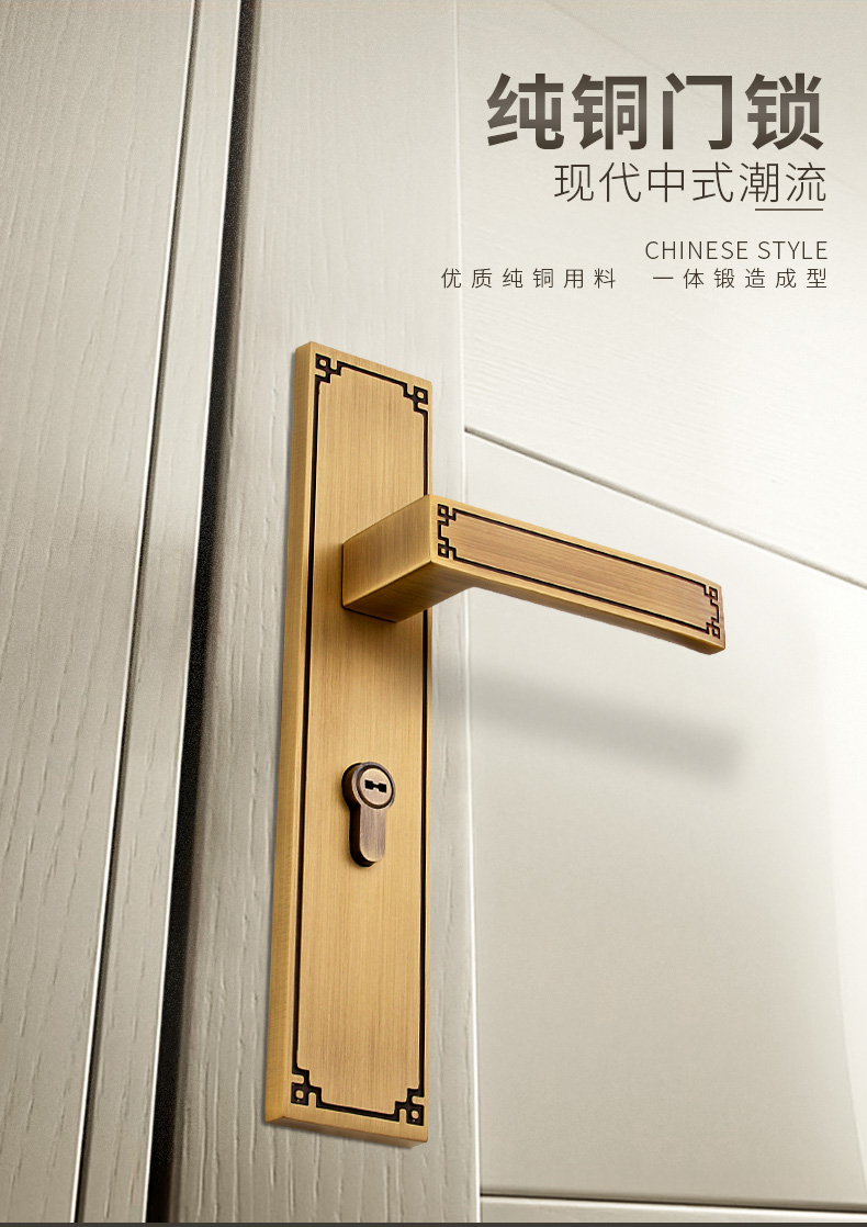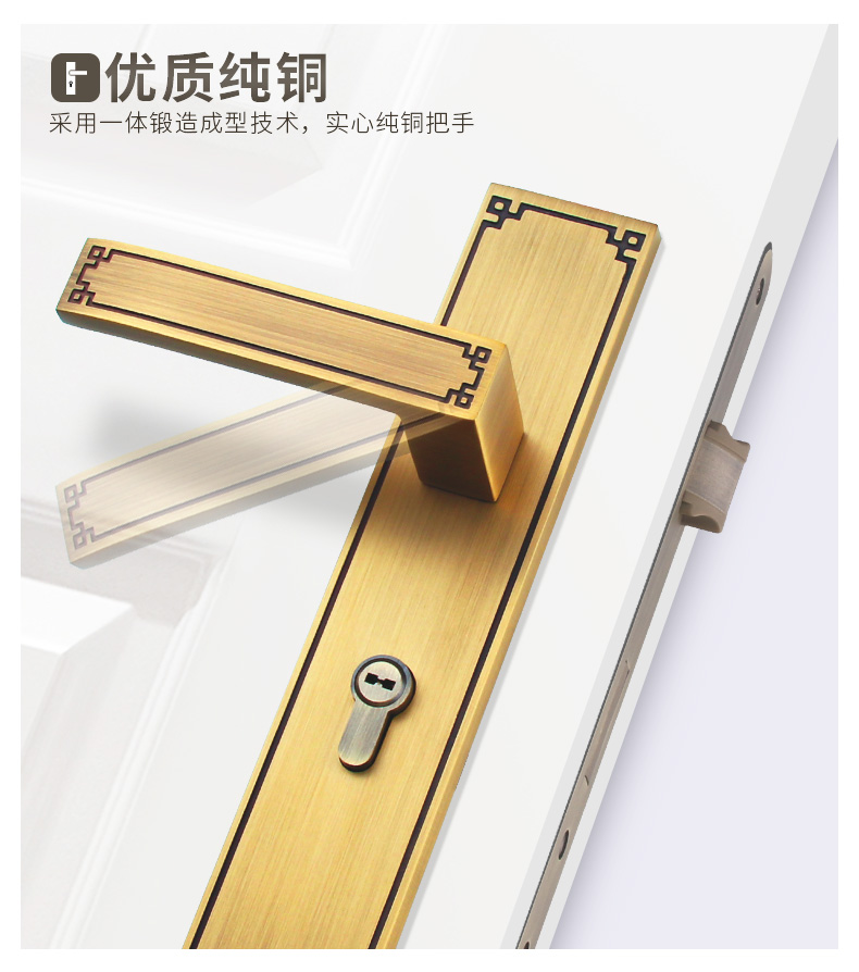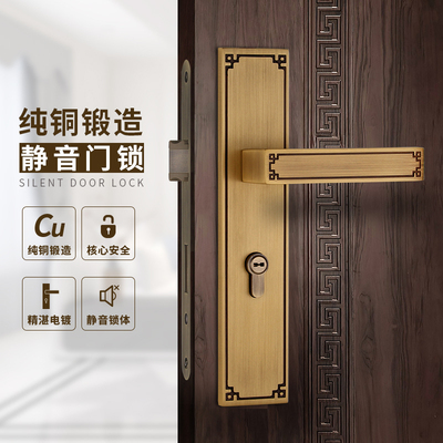 Khóa cửa phòng ngủ trong nhà bằng đồng nguyên chất kiểu Trung Quốc mới toàn bộ bằng đồng gia dụng bằng đồng gỗ rắn phòng câm