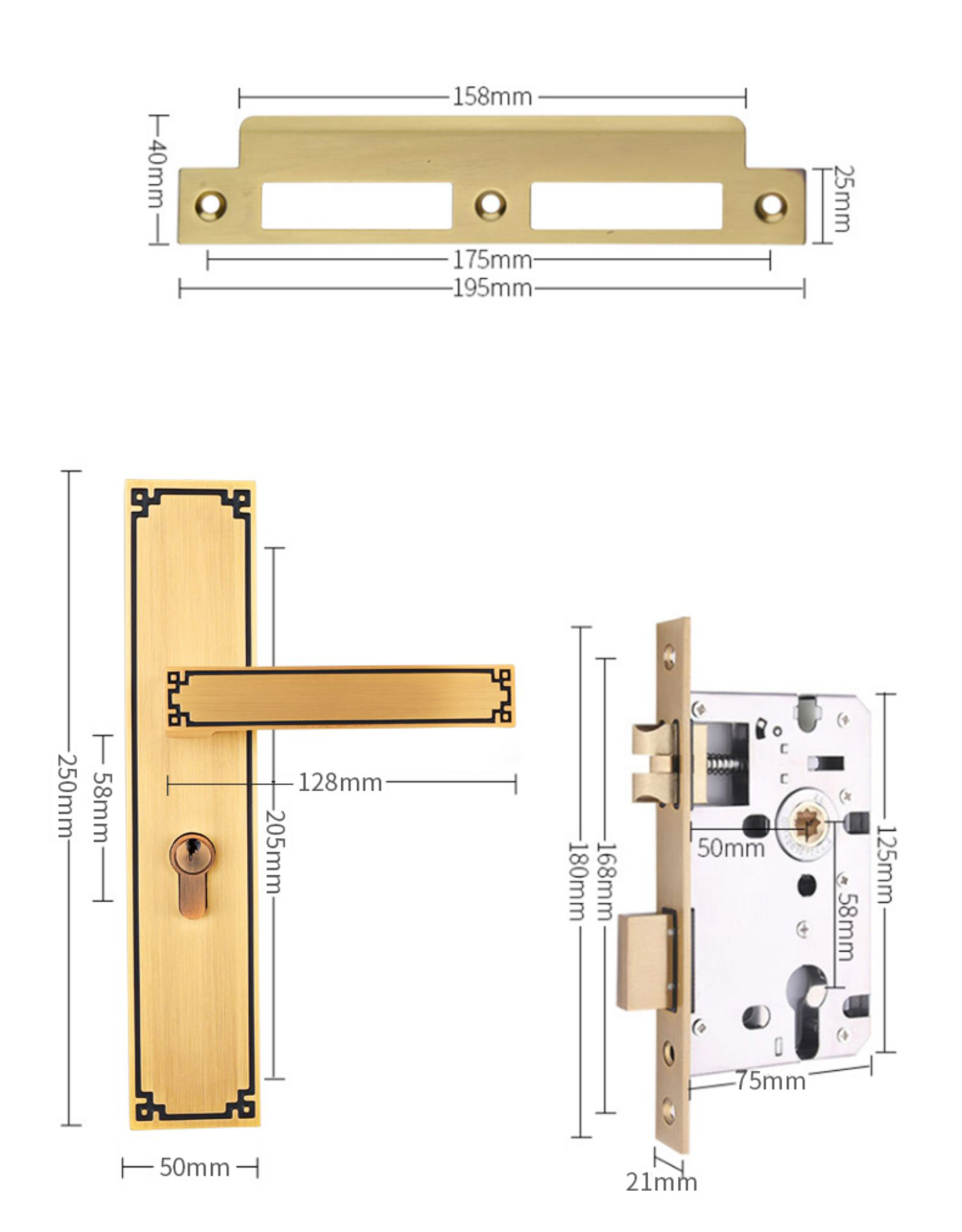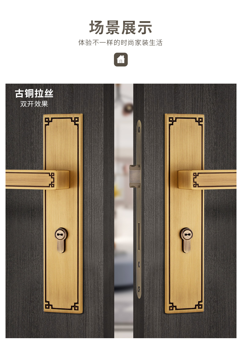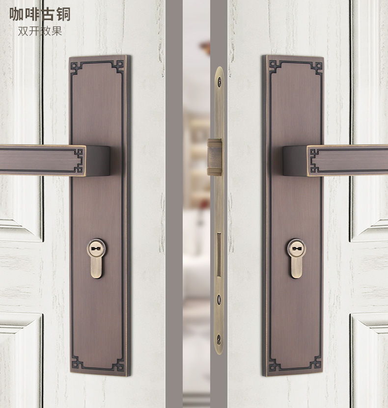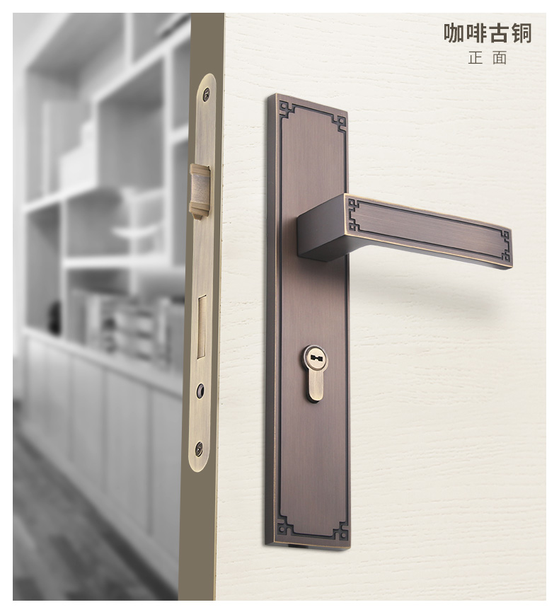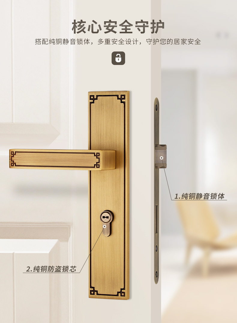 Khóa cửa phòng ngủ trong nhà bằng đồng nguyên chất kiểu Trung Quốc mới toàn bộ bằng đồng gia dụng bằng đồng gỗ rắn phòng câm