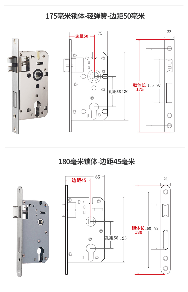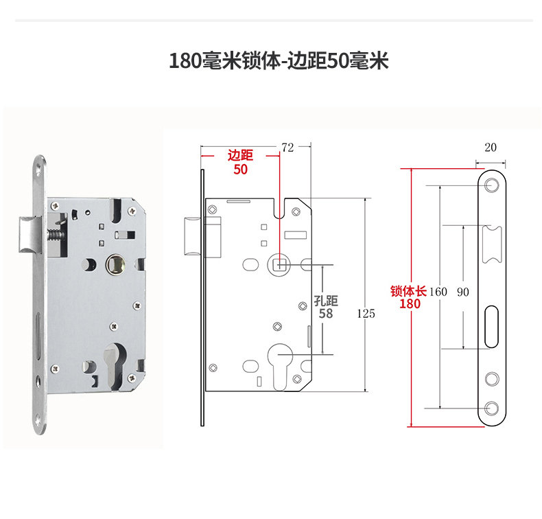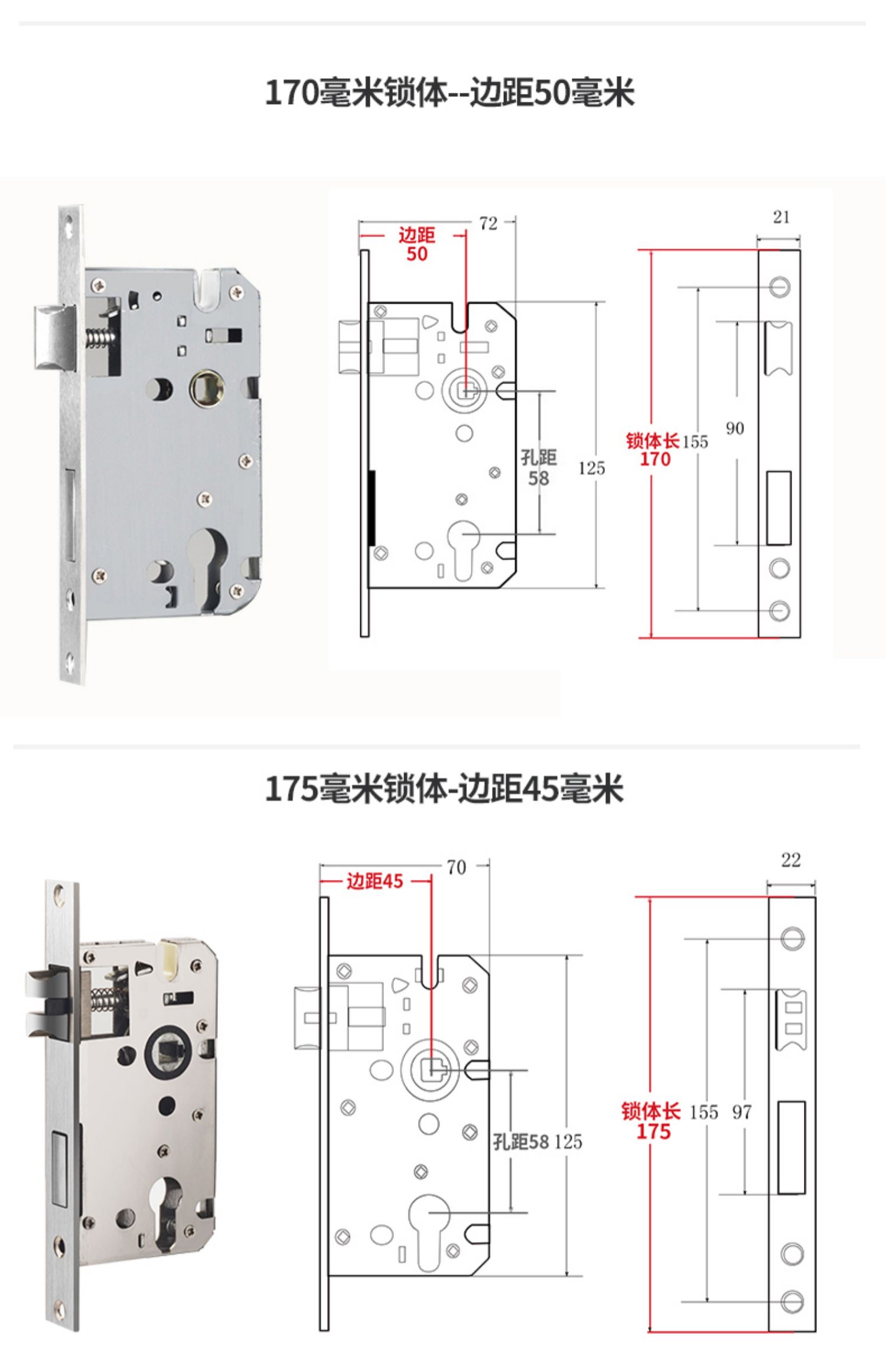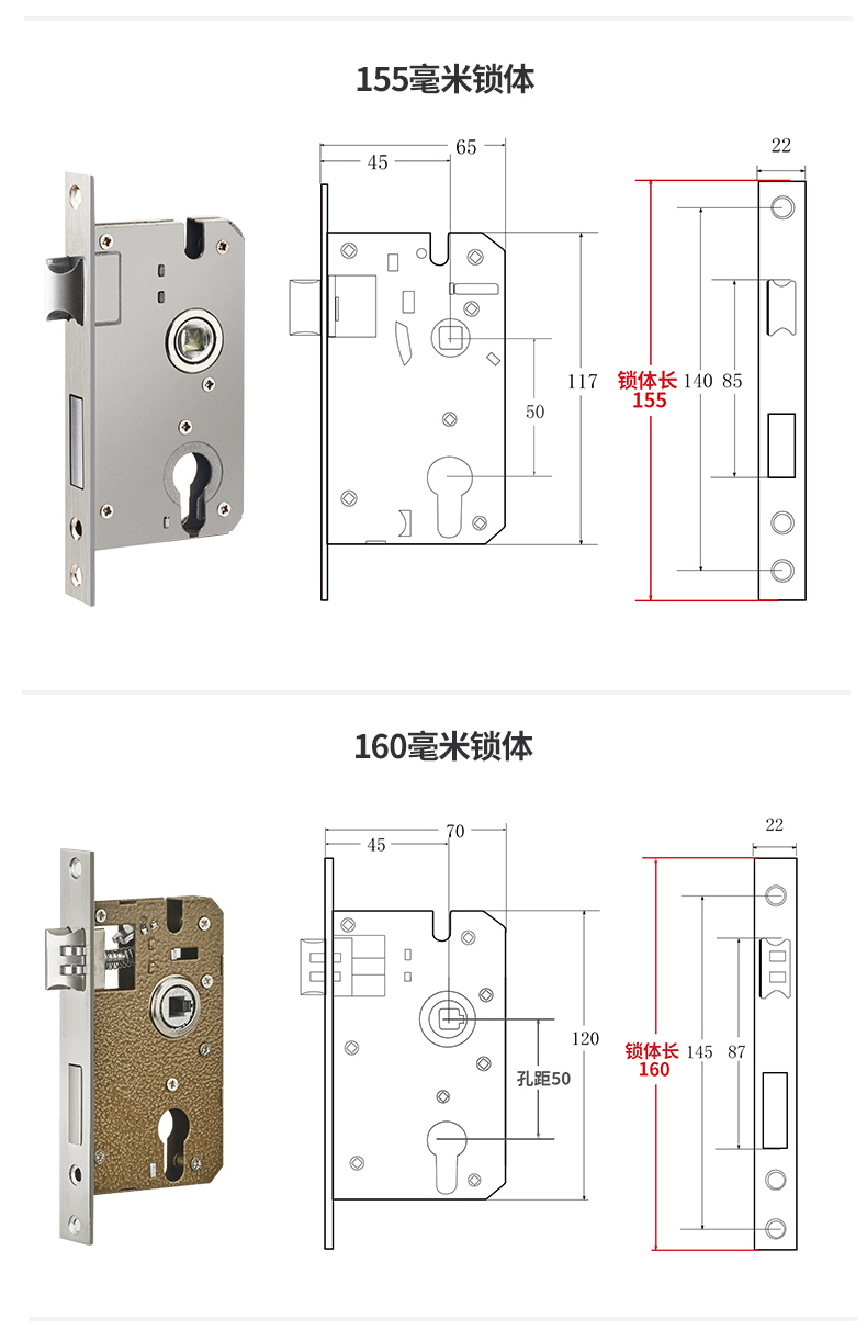 Khóa cửa lưỡi đơn-Khoảng cách mép thân khóa 50/khoảng cách lỗ 50
