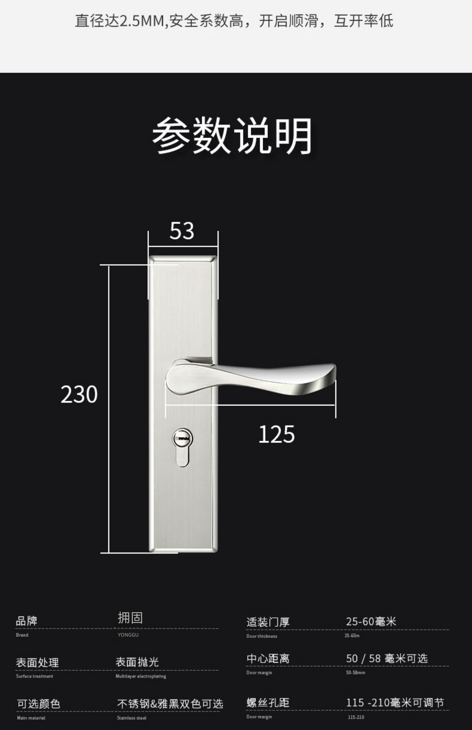 Màu đen - khoảng cách lỗ 58 - không bao gồm thân khóa, ổ khóa trụ