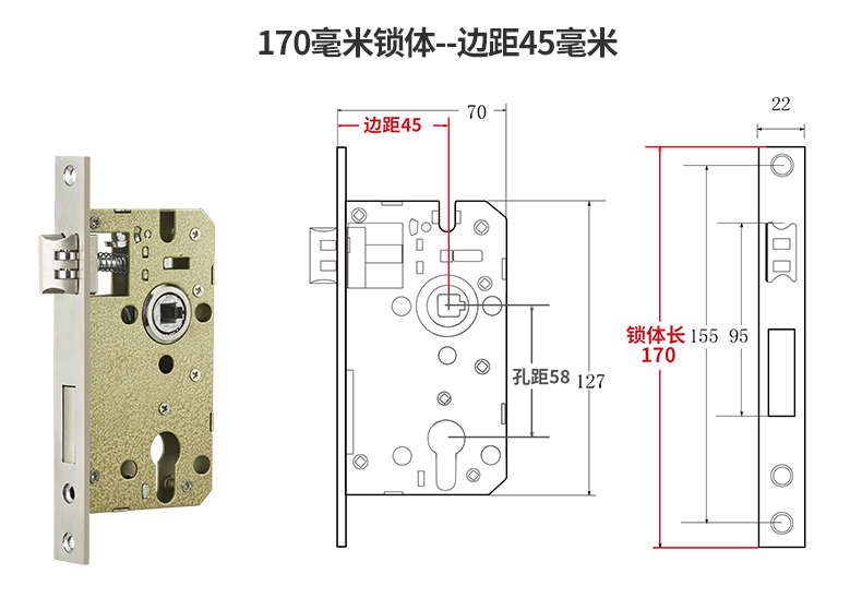 Thép không gỉ [trọn bộ] Thân khóa 145 - khoảng cách lưỡi 48