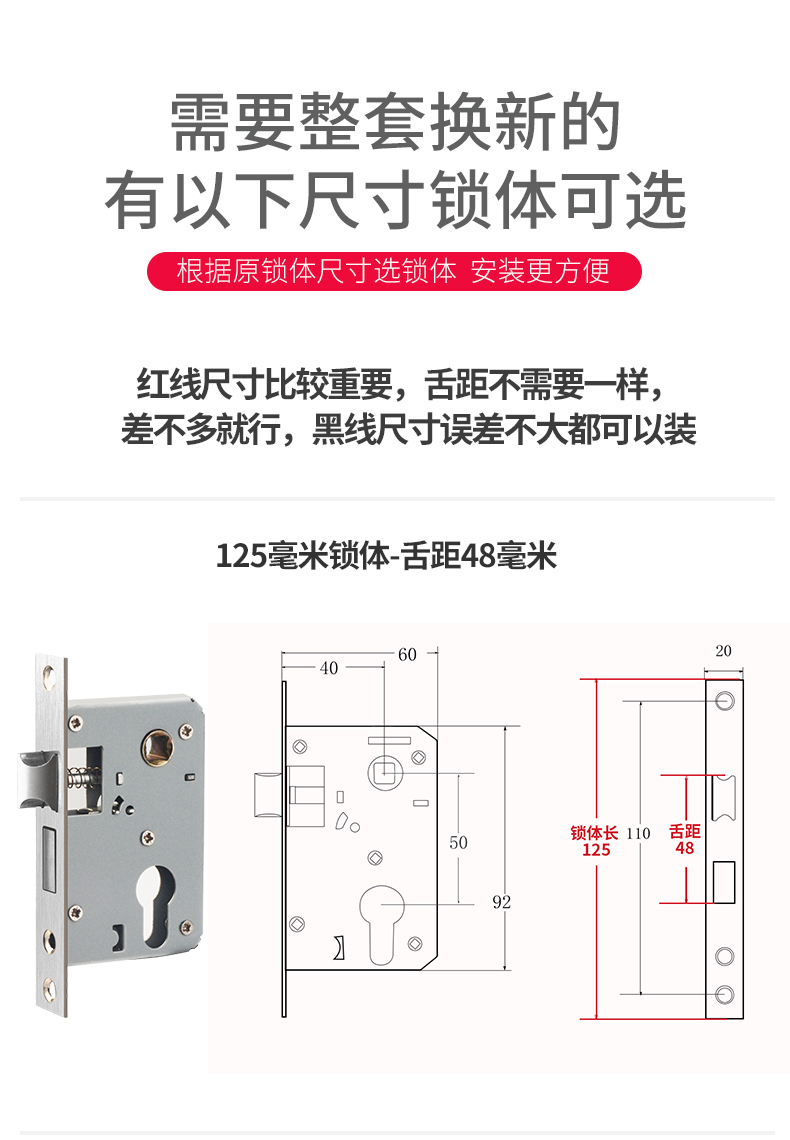 Thép không gỉ [trọn bộ] Thân khóa 125 - khoảng cách lưỡi 48