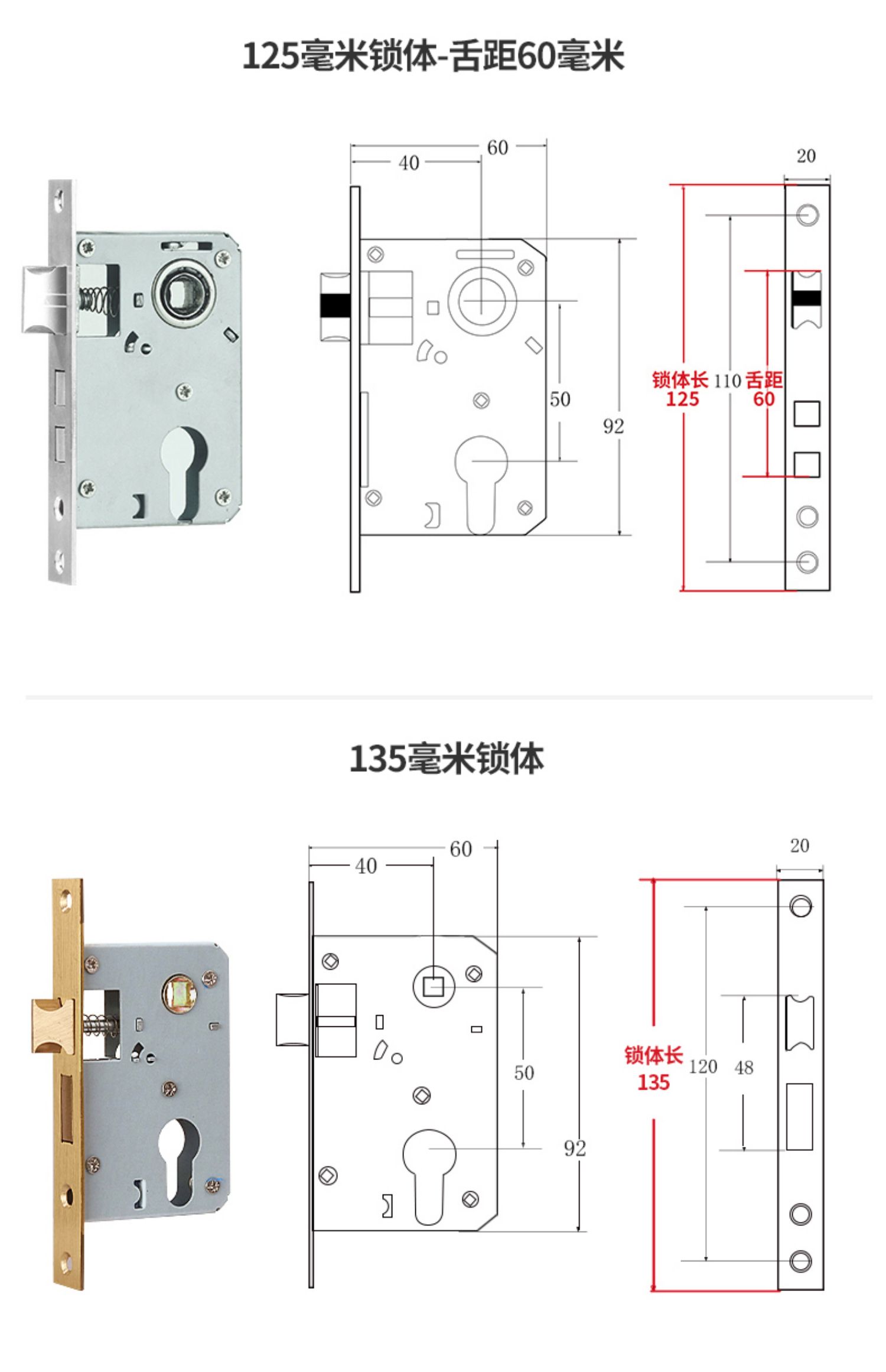 Thép không gỉ [trọn bộ] Thân khóa 135