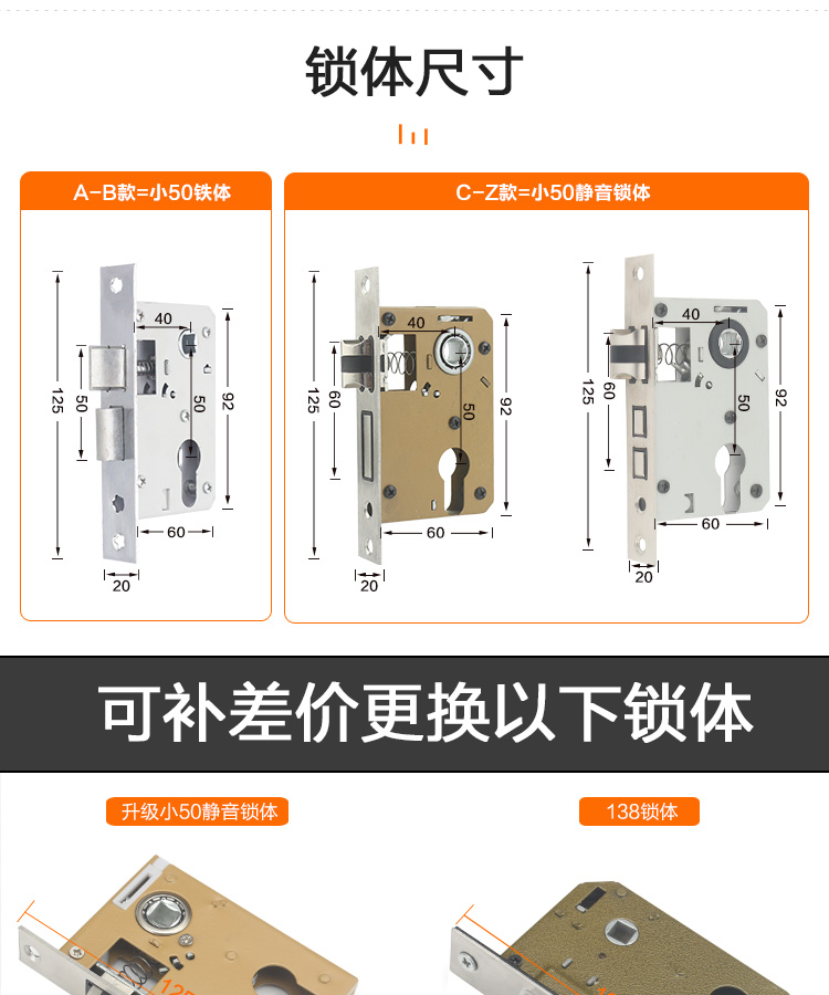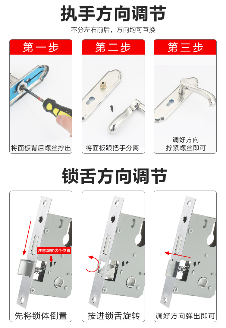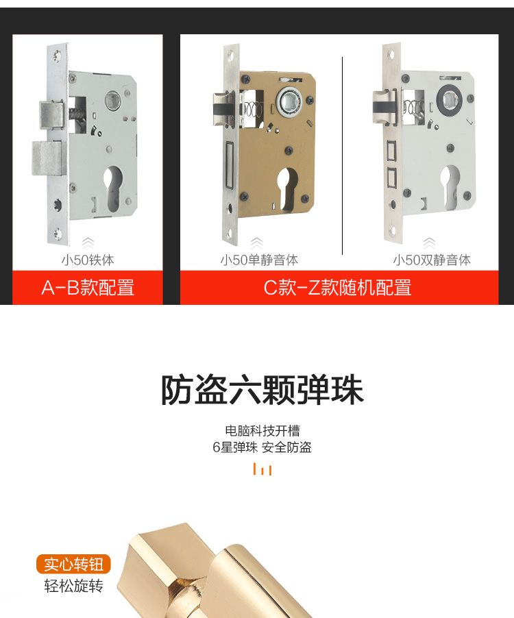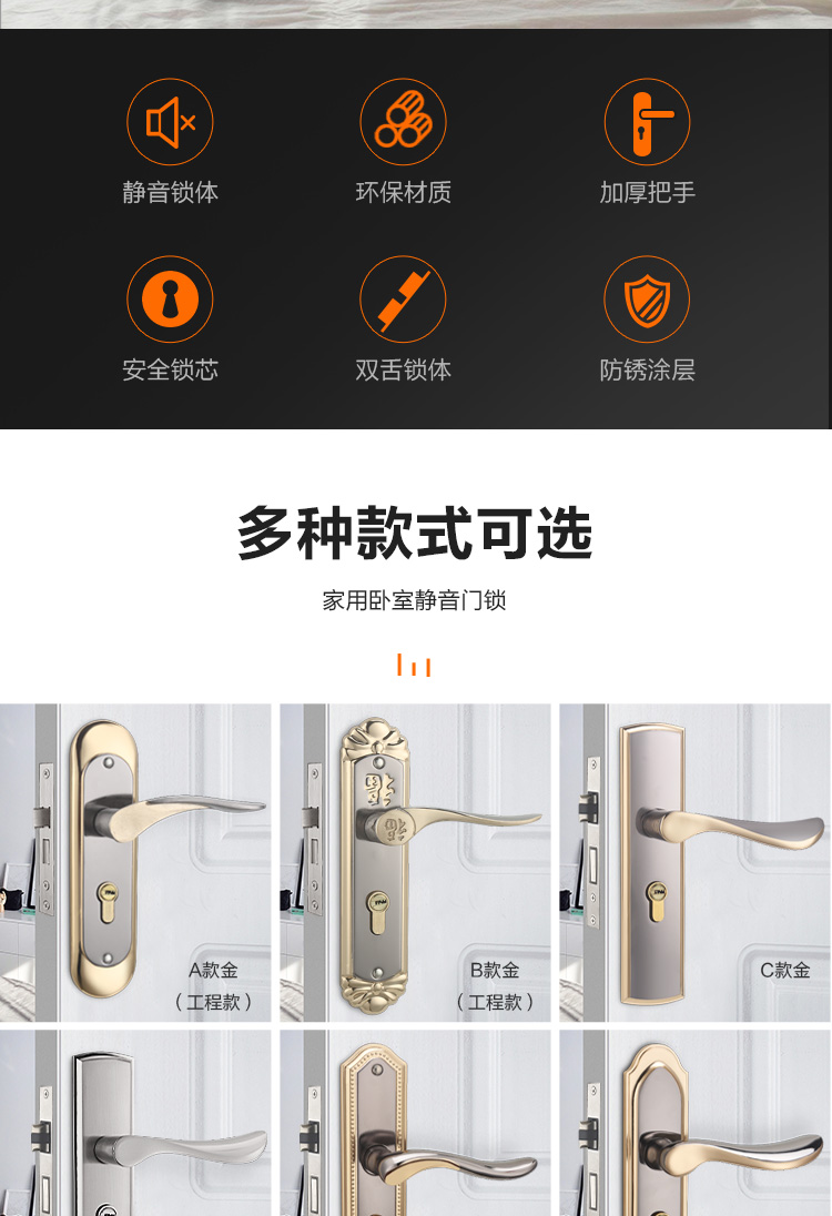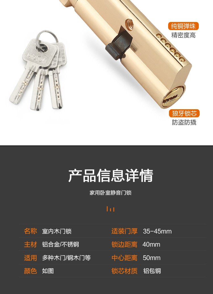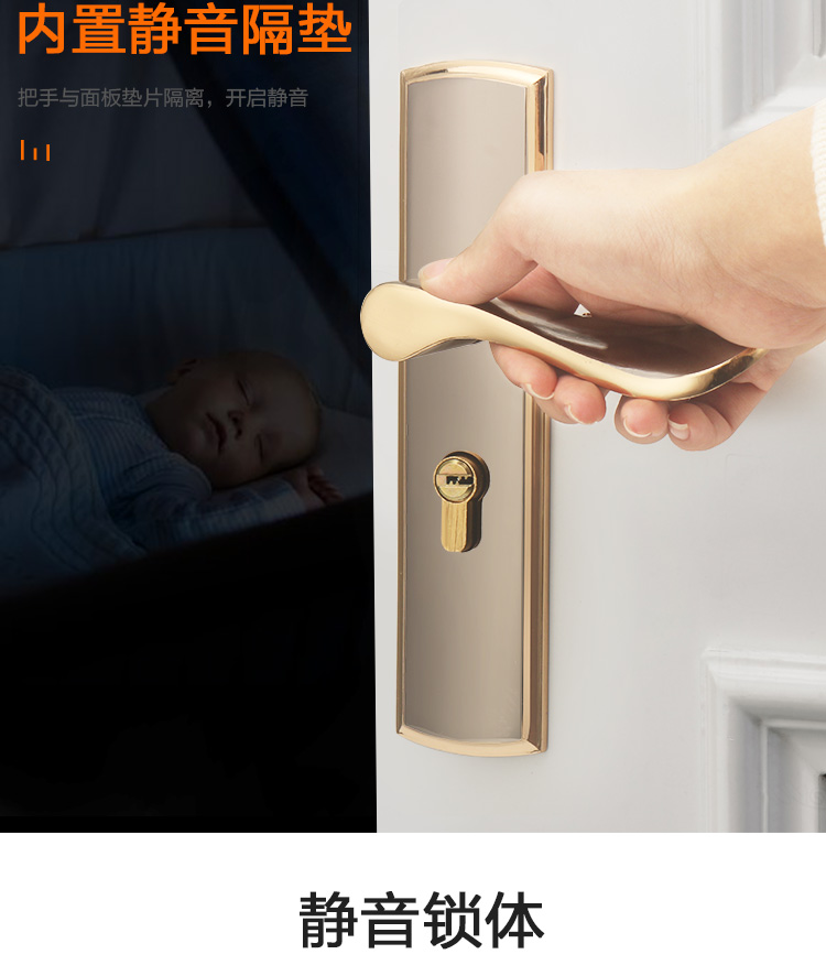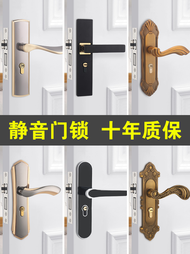 Khóa cửa phòng nhà đa năng tay nắm cửa gỗ chắc chắn Châu Âu câm kiểu cũ Khóa cửa cũ mà không cần đục lỗ