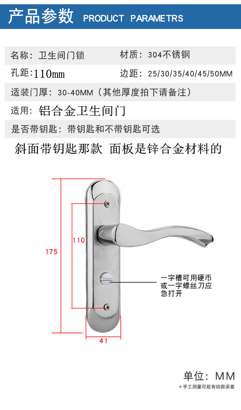 Khóa cửa phòng tắm loại phổ thông không có chìa khóa nhà vệ sinh Cửa nhà vệ sinh hợp kim nhôm dốc lõm phụ kiện khóa vòng cung
