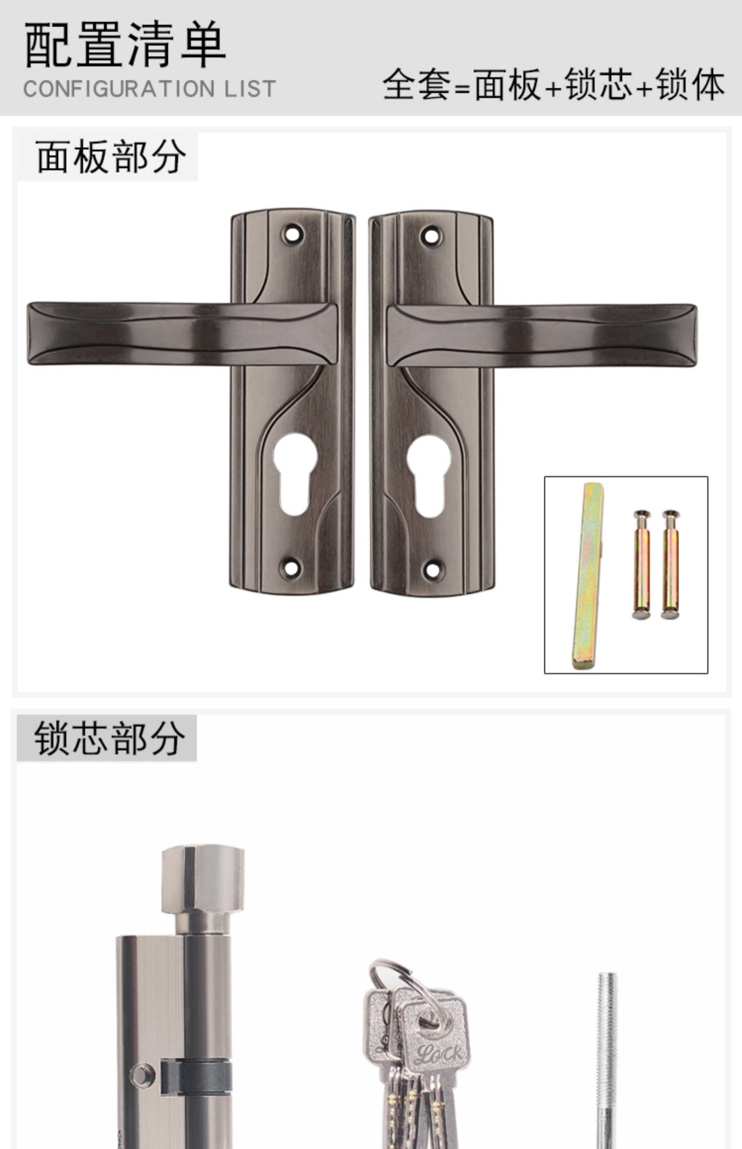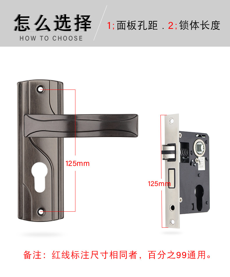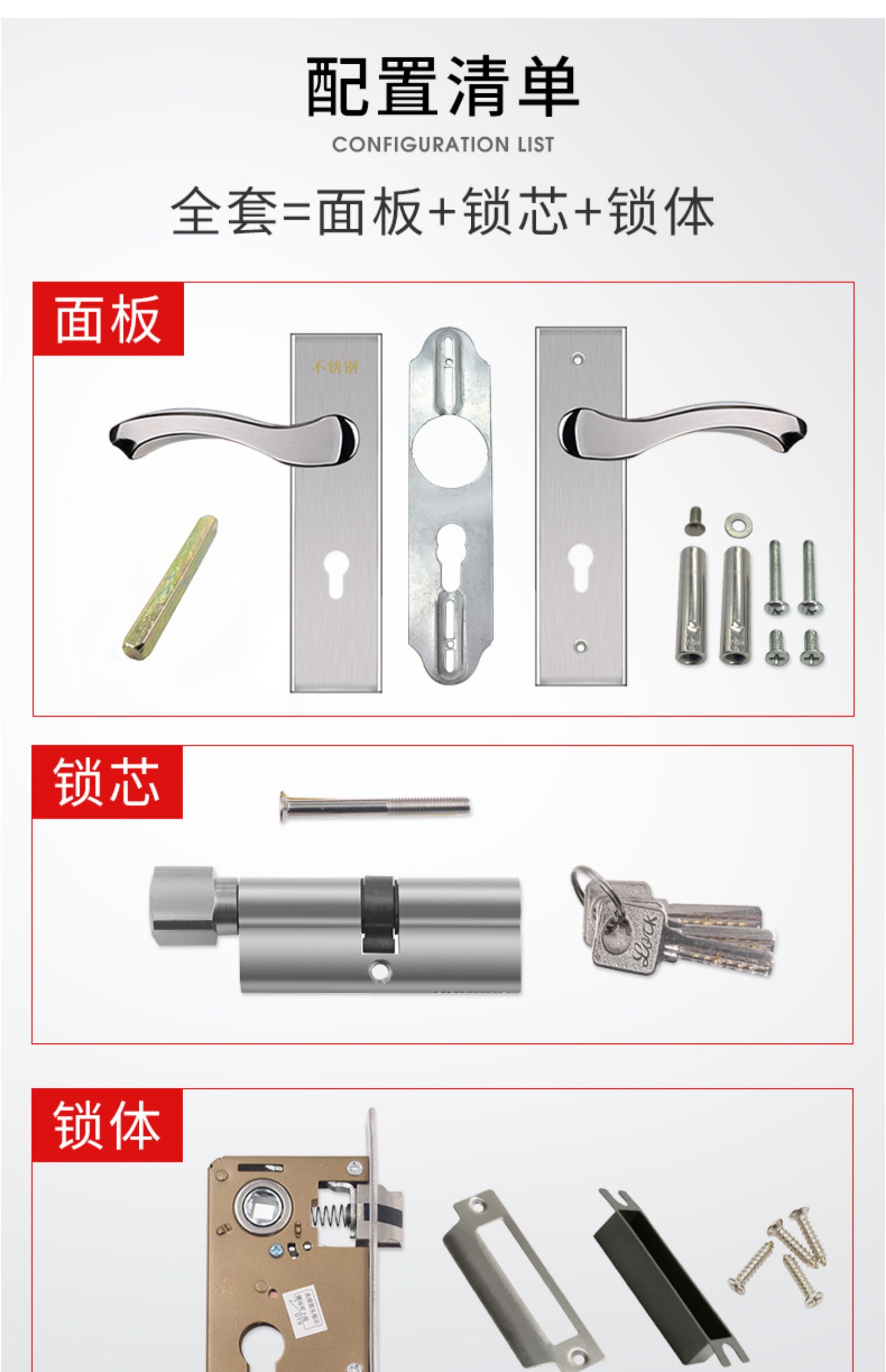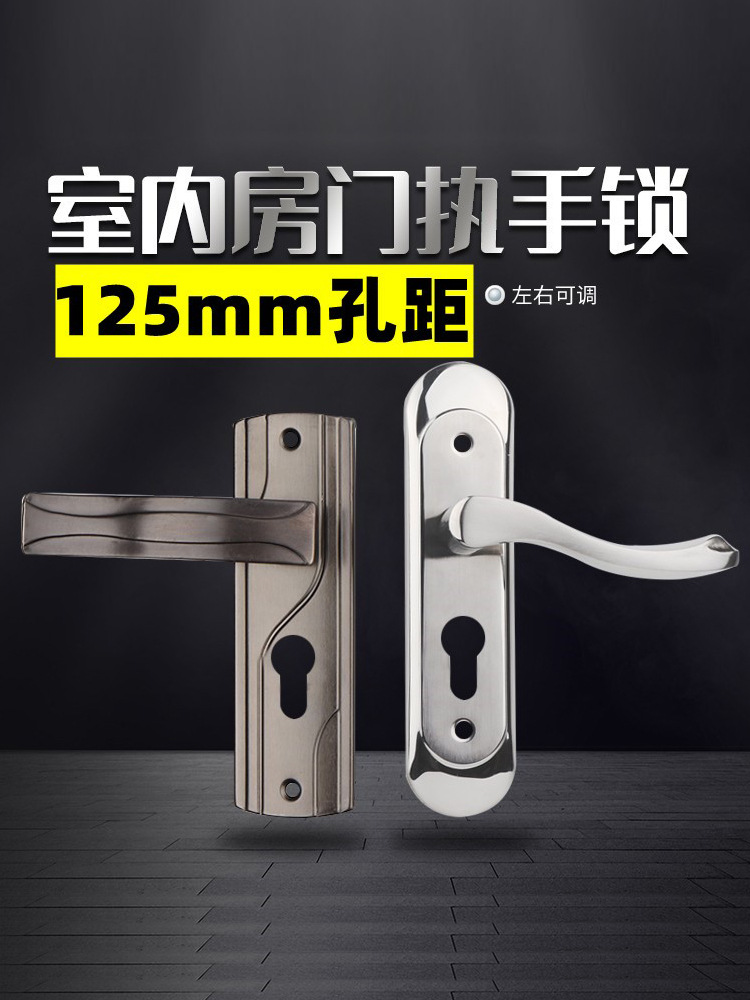 Khóa cửa sắt nhà phòng nhỏ 50 giảm thanh phòng ngủ thép không gỉ câm khoảng cách lỗ 125mm đa năng trong nhà khóa
