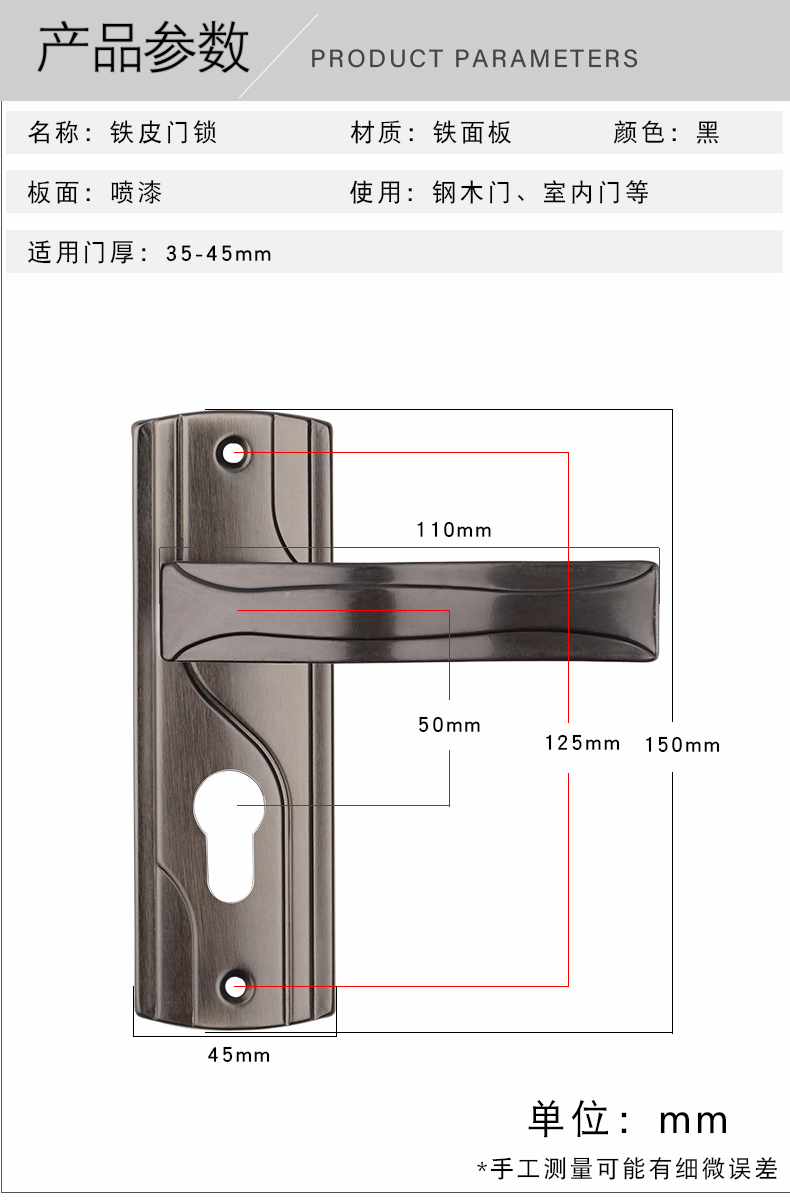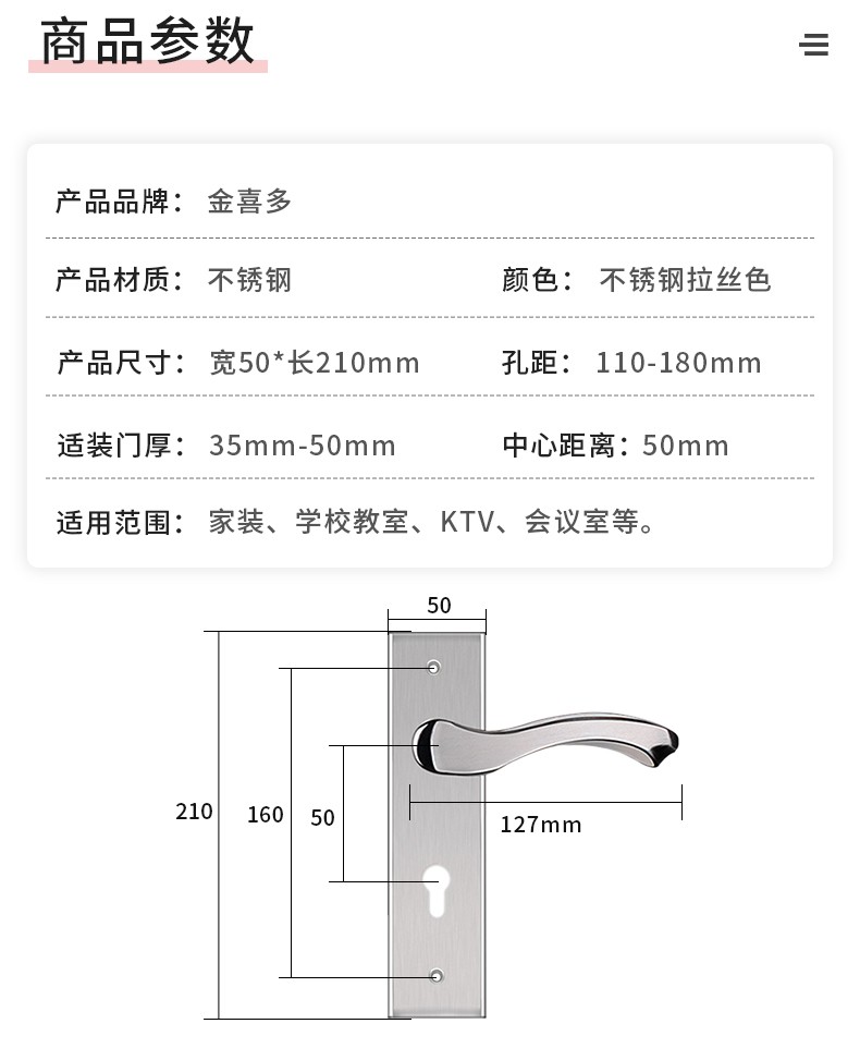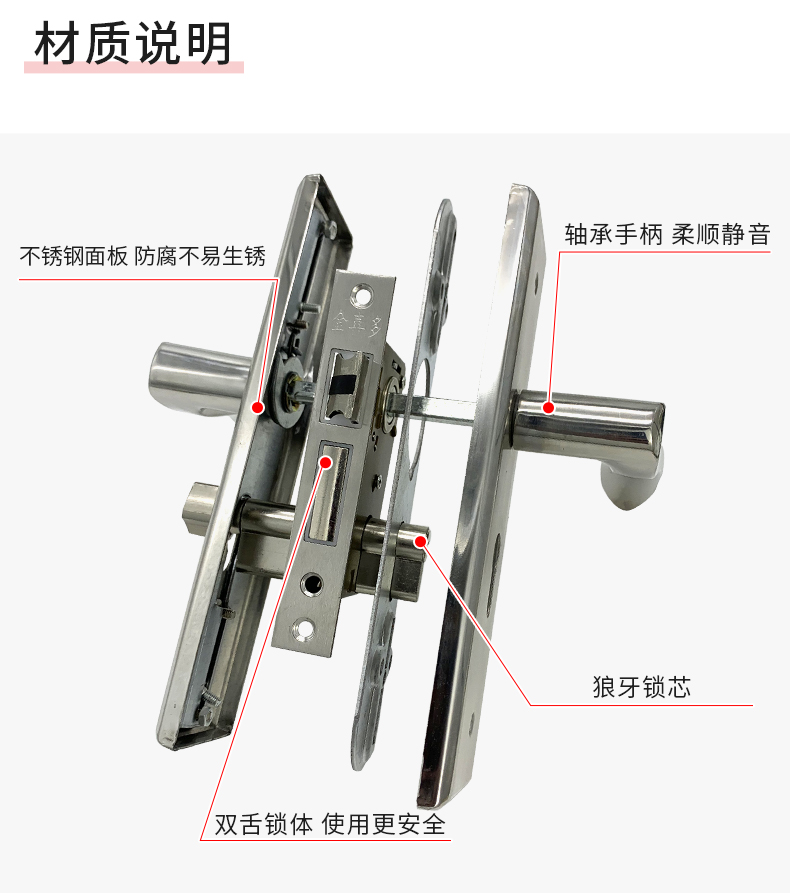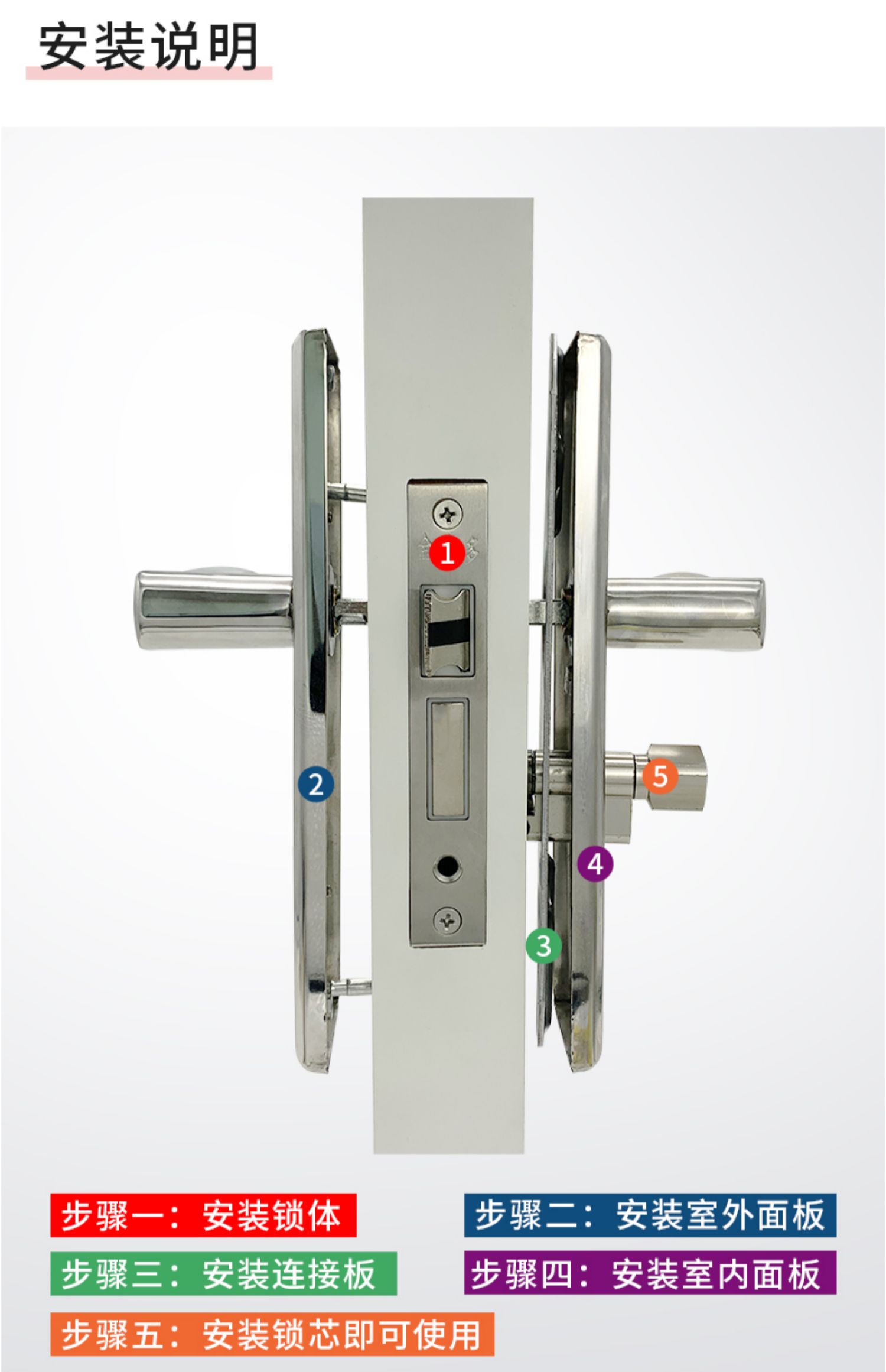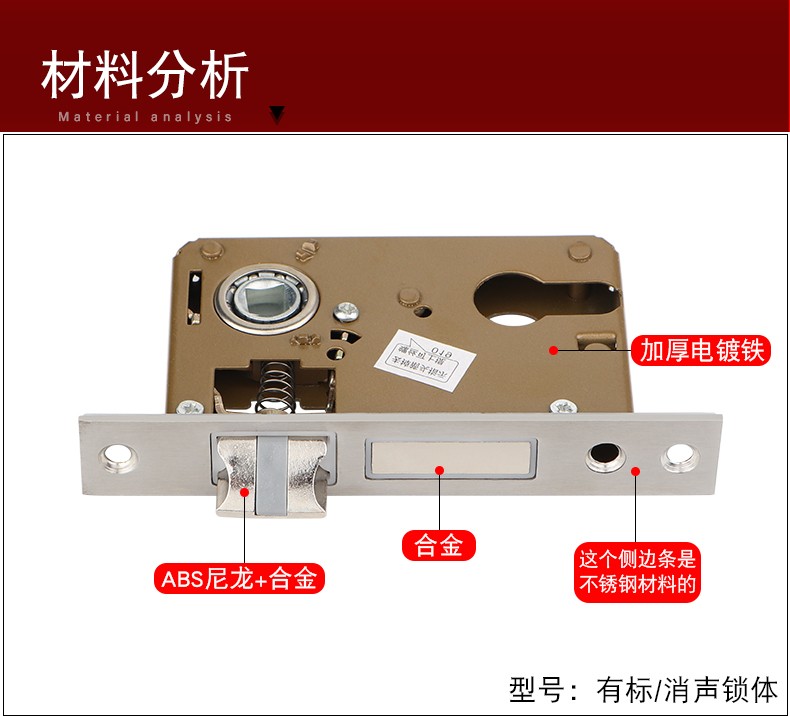 Khóa cửa sắt nhà phòng nhỏ 50 giảm thanh phòng ngủ thép không gỉ câm khoảng cách lỗ 125mm đa năng trong nhà khóa